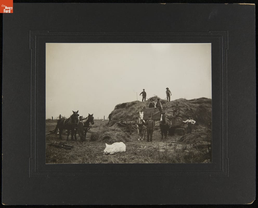 Photograph, "Hay Press and Work Crew," 1915-1925
