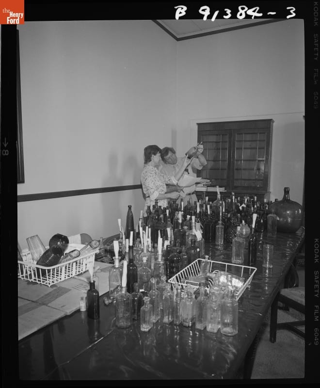 Bottles Being Readied for the New Glass Exhibit in the Henry Ford Museum Promenade, May 1982
