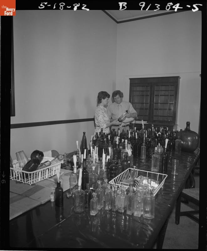 Bottles Being Readied for the New Glass Exhibit in the Henry Ford Museum Promenade, May 1982