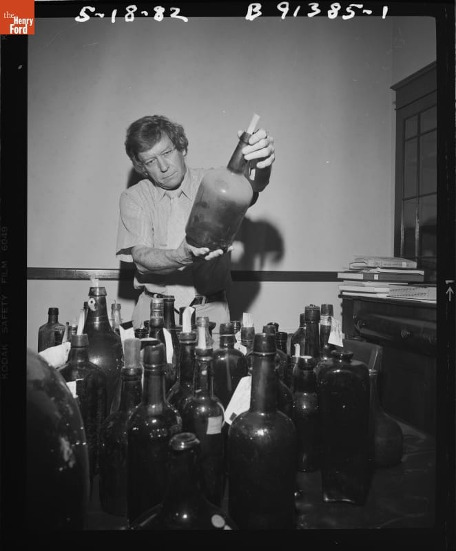 Bottles Being Readied for the New Glass Exhibit in the Henry Ford Museum Promenade, May 1982