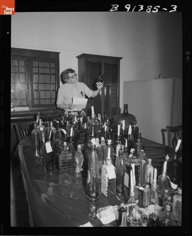 Bottles Being Readied for the New Glass Exhibit in the Henry Ford Museum Promenade, May 1982
