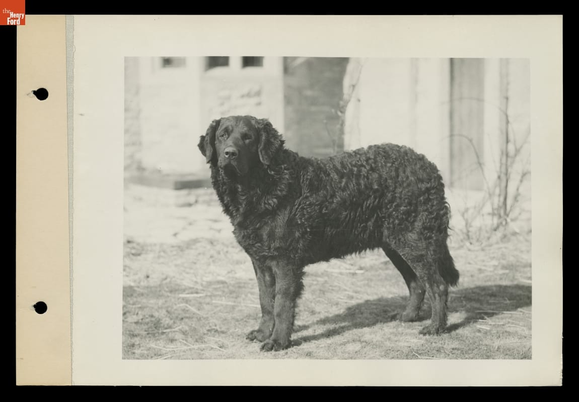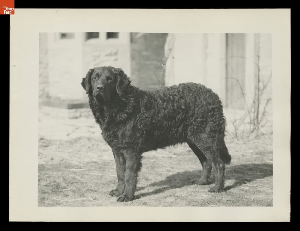 Henry Ford purchased a black Newfoundland puppy in 1930. The dog, named Rover, would help guard sheep at Greenfield Village's Cotswold Cottage. (Ford envisioned the interpretation of the cottage as the home of an English sheepherder.) The dog became a fixture in the Village. Rover was beloved by many: Gus Munchow--his trainer, Ford, and the schoolchildren of the Edison Institute.