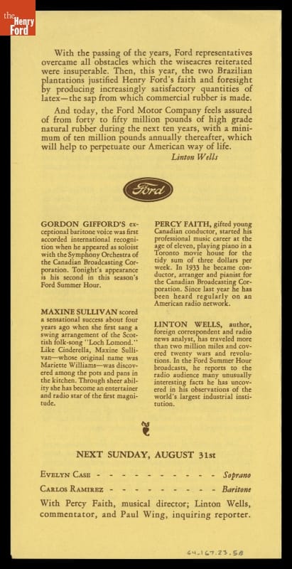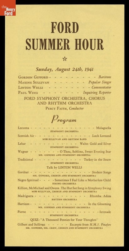 "Ford Summer Hour," Program for Sunday, August 24, 1941