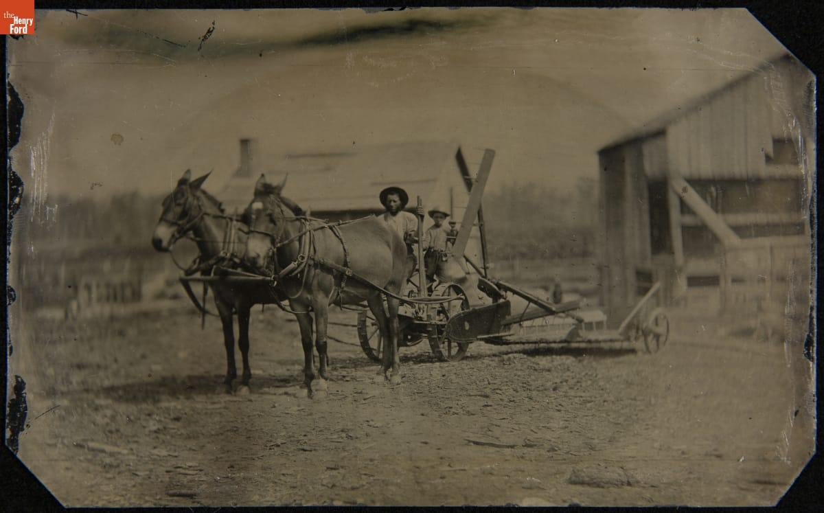 Man and Child Using a Mule-Drawn Reaper, 1875-1900