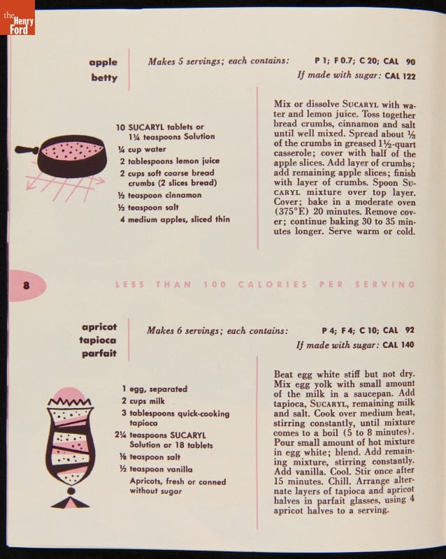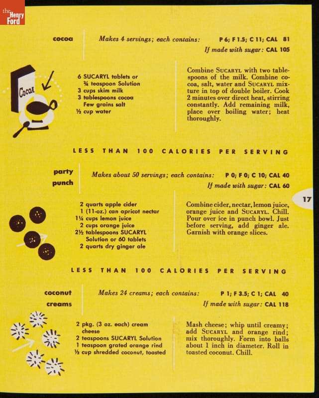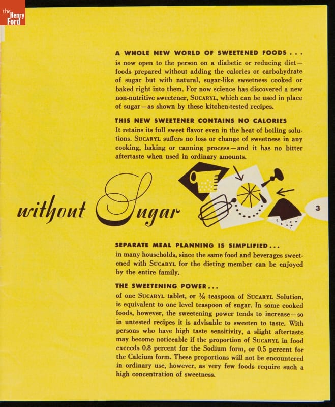 "New Edition, Calorie Saving Recipes for Foods Sweetened without Sugar Using Sucaryl," 1952