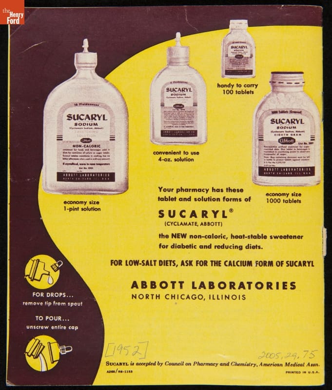 Artificial sweeteners provide dieters and people with diabetes or other metabolic disorders with a sugar substitute. Sucaryl, a cyclamate-based sweetener, was first marketed to the public in 1951. Though Sucaryl promised sweet-tasting foods without adding calories, links to possible increased cancers risks spurred the Food and Drug Administration to ban cyclamates in 1969.