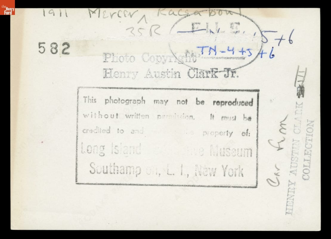 The Mercer Type 35 Raceabout, designed by Finley R. Porter, was the high-performance sports car of its day. It could top 90 miles per hour. This 1911 example belonged to Henry Austin Clark, Jr., the foremost automotive collector and historian of his day. Clark acquired the Raceabout in 1949, and it remained in his family for the next 65 years.