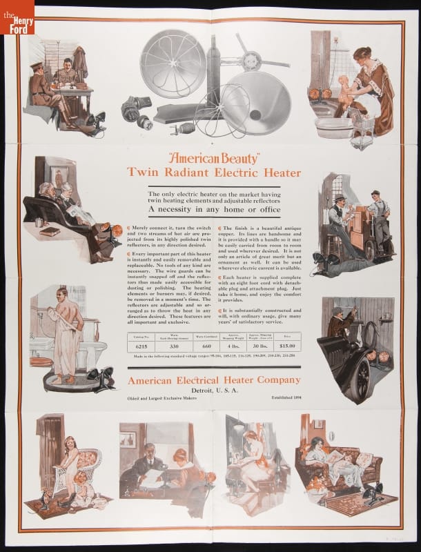 American Electrical Heating Company Advertising Broadside, "American Beauty Twin Radiant Electric Heater," circa 1925