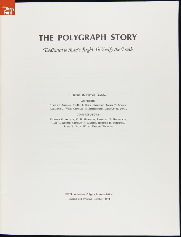 "The Polygraph Story: Dedicated to Man's Right to Verify the Truth," circa 1974