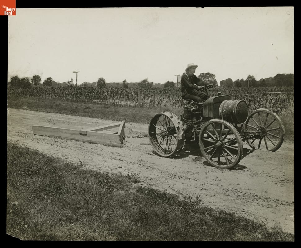 Burt W. Scott Operating the Second Experimental Ford Tractor, circa 1906-1907