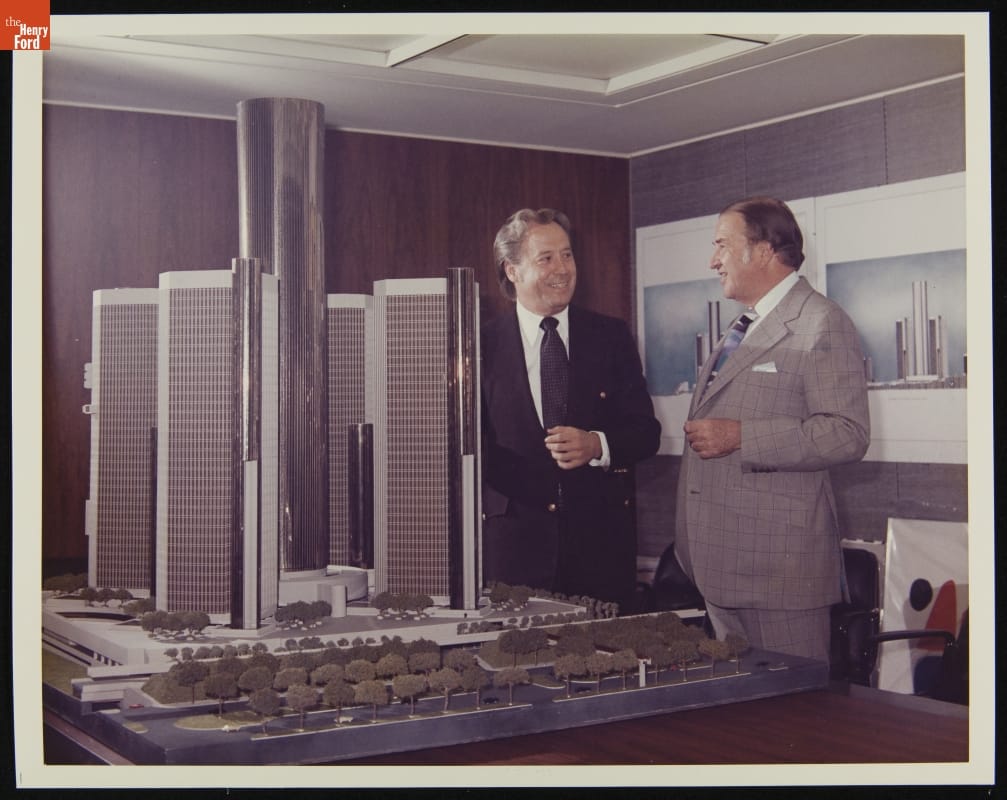 Henry Ford II and Architect John Portman with Model of Detroit Renaissance Center, May 1972