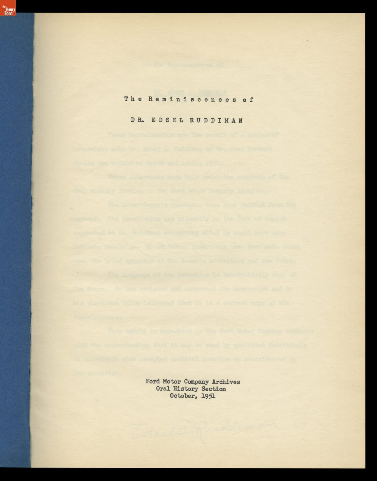 Transcript, "The Reminiscences of Dr. Edsel Ruddiman," October 1951