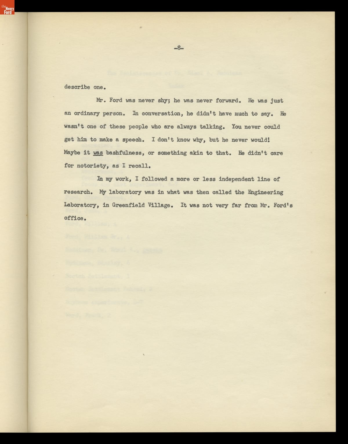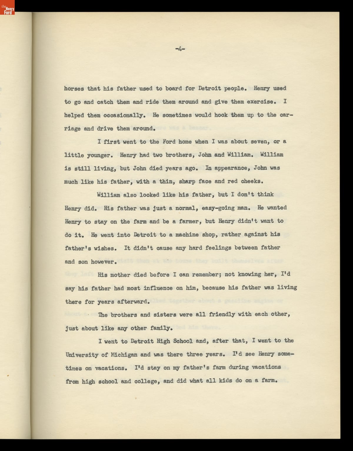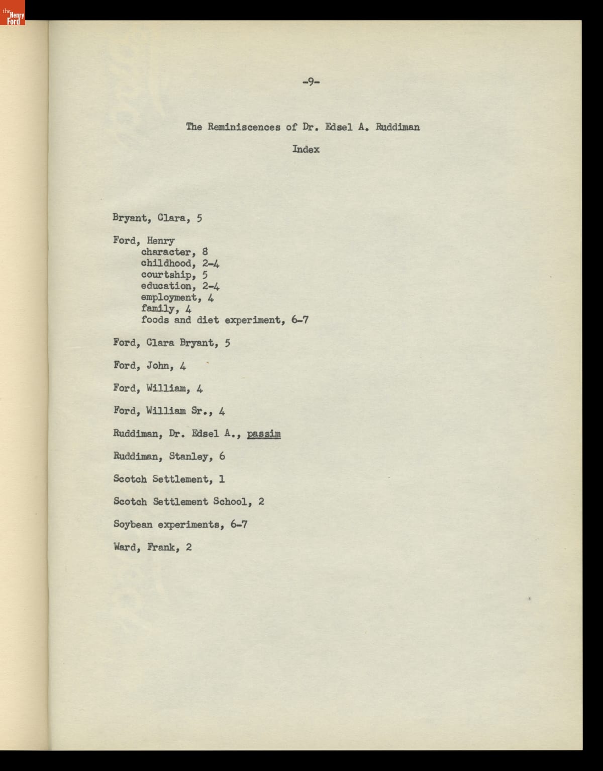 Edsel Ruddiman was a lifelong friend of Henry Ford's. As boys, they attended the same Scotch Settlement School, where they shared a love of pranks. Years later, Ruddiman worked as a research chemist on Ford's efforts in chemurgy -- promoting the use of agricultural products in industry. Henry and Clara Ford named their only child, Edsel Ford, after Ruddiman.