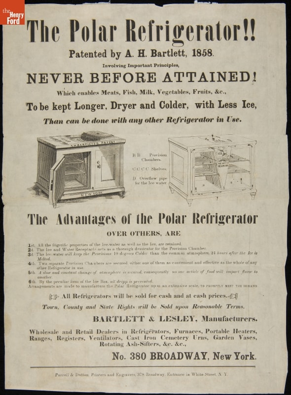 "The Polar Refrigerator!! Patented by A. H. Bartlett, 1858"