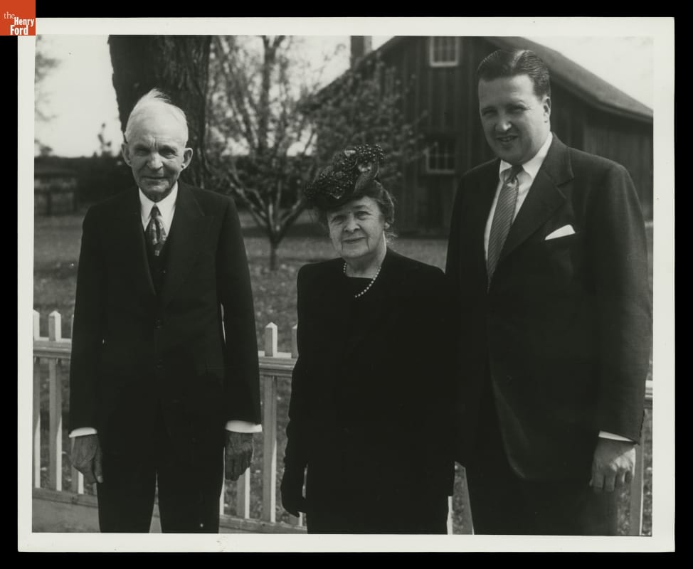 Henry Ford, Clara Ford and Henry Ford II in Greenfield Village, May 1946