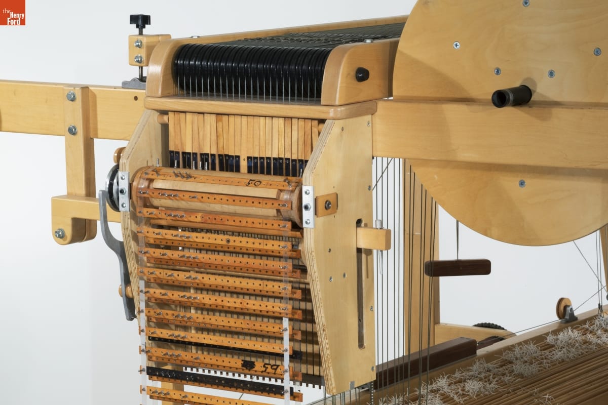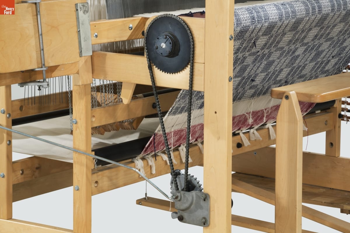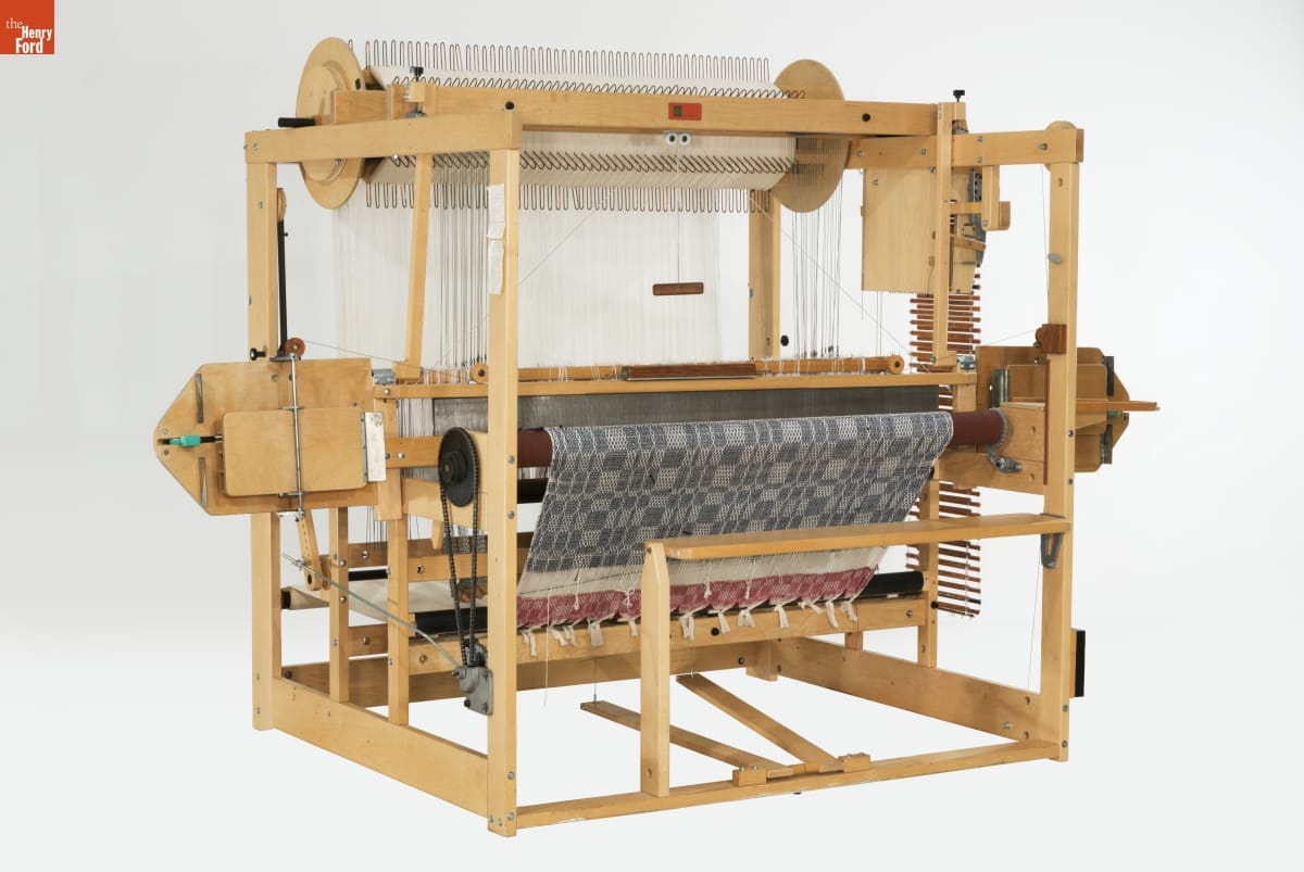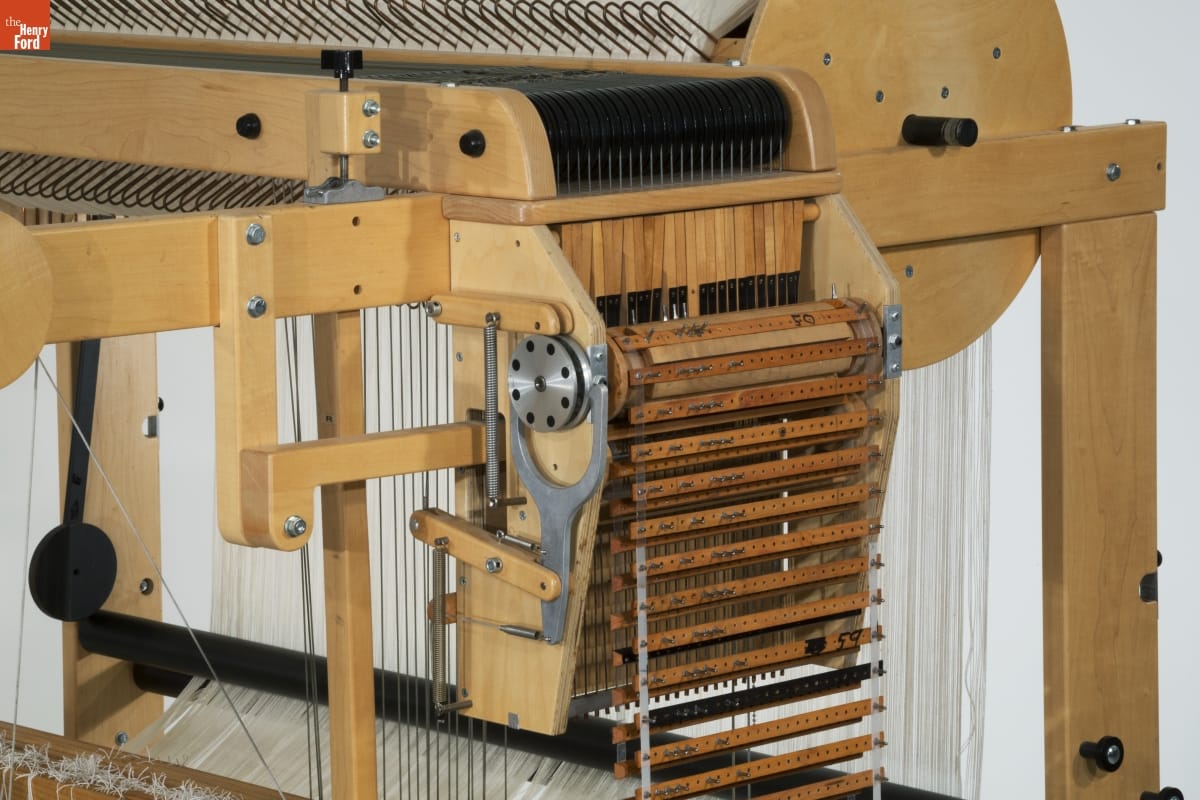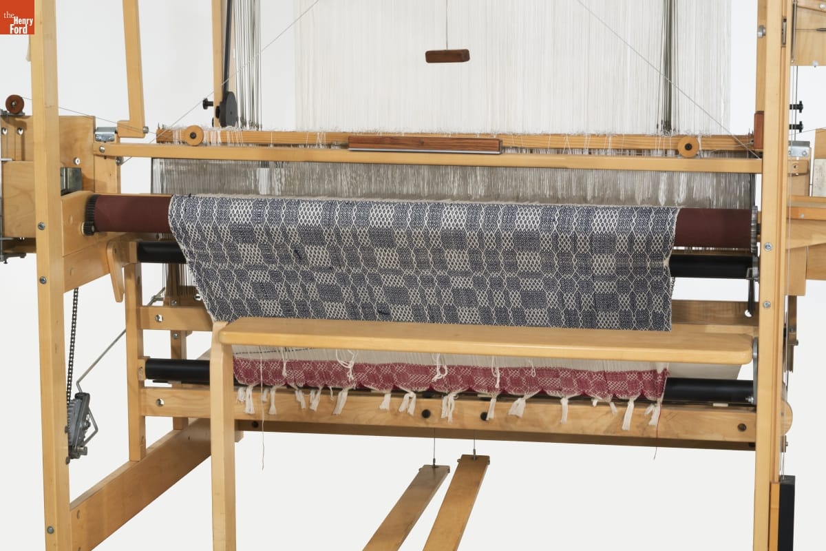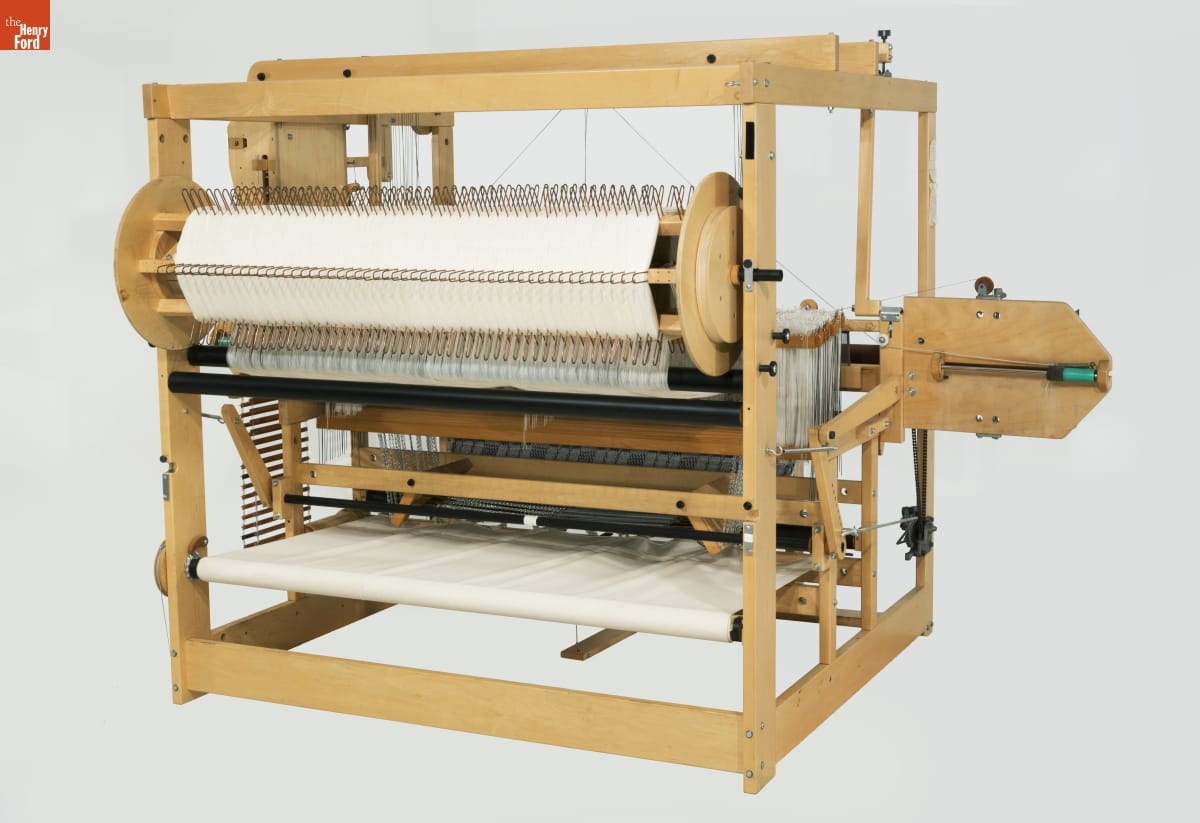 Combining handcraft with advanced technology, dobby looms became popular when hand weaving experienced a revival beginning in the 1960s and 1970s. The dobby mechanism, adapted from power looms used in factories, creates the weaving pattern. This allows weavers to produce complex textiles more quickly and easily. Dobby looms appealed to artisan and craft weavers producing fabrics for individual customers, specialty shops, or art fairs.