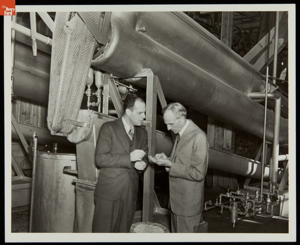 Robert Boyer and Henry Ford in the Soybean Laboratory, Greenfield Village, 1936