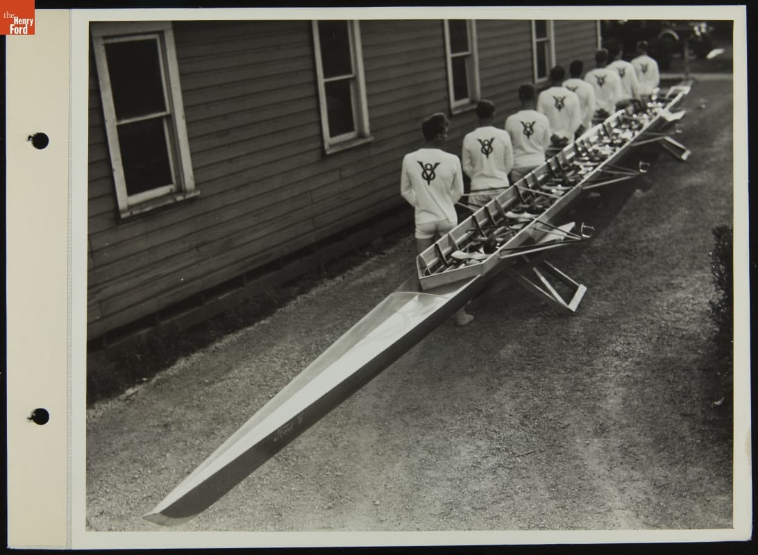 Wyandotte Boat Club "V-8" Rowing Team with Racing Shell, July 1934