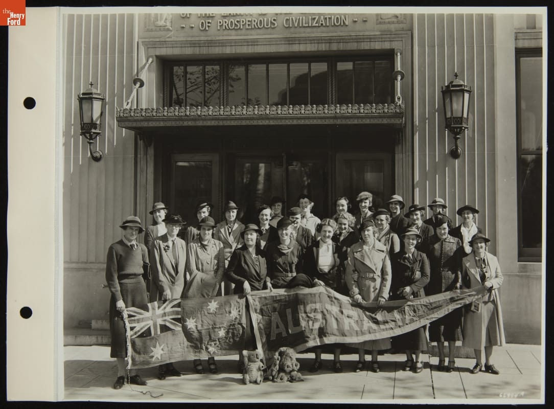 Australian and Detroit Women's Hockey Team at the Ford Rouge Plant Administration Building, October 1936