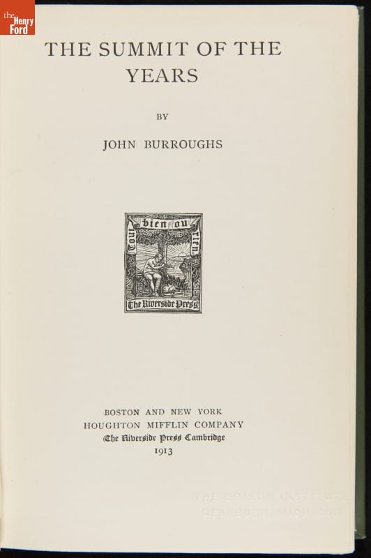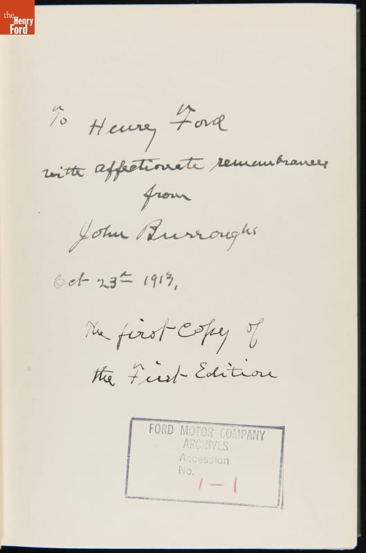 To Henry Ford with affectionate remembrance from John Burroughs Oct 23rd-- 1913, The first copy of the First Edison