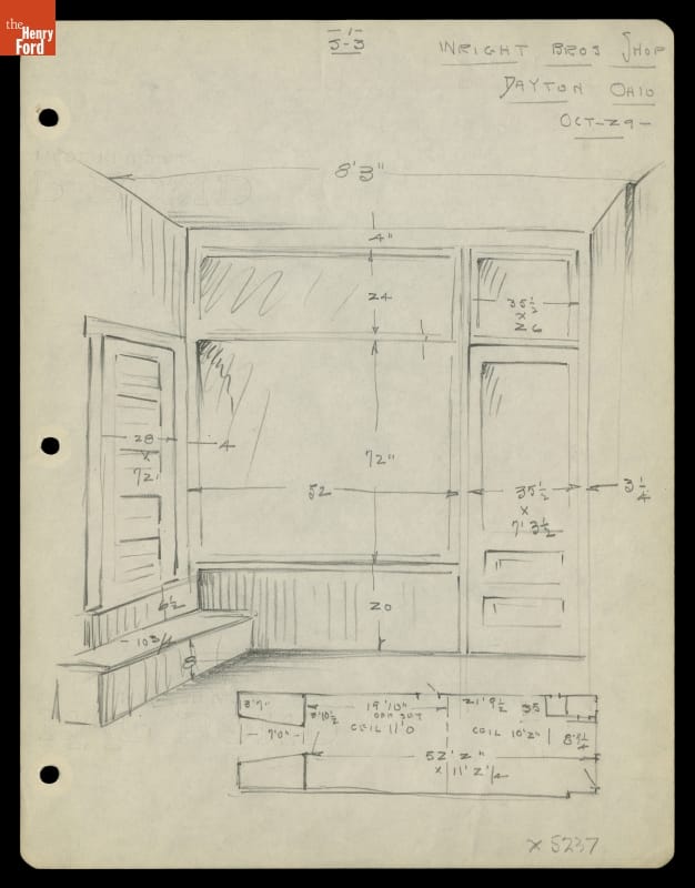 In October 1936, Henry Ford purchased the bicycle shop used by Wilbur and Orville Wright in Dayton, Ohio. Over the next 18 months, Ford relocated and reassembled the building at his Greenfield Village museum complex in Dearborn, Michigan. Before the move, architect Edward Cutler made detailed drawings of the shop to ensure the project's accuracy.