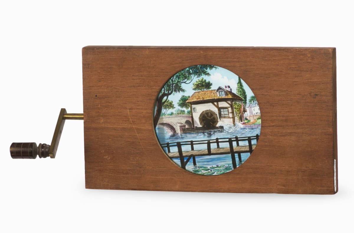 Magic lanterns use a concave mirror and light source to project images on glass slides with painted or photographic scenes. Developed in the 17th century, magic lanterns predate slide projectors and motion pictures. In the hands of magicians, they became "lanterns of fright," projecting wondrous images and apparitions. Slide themes ranged widely: exotic travel, folklore, advertising, history, science, and art.