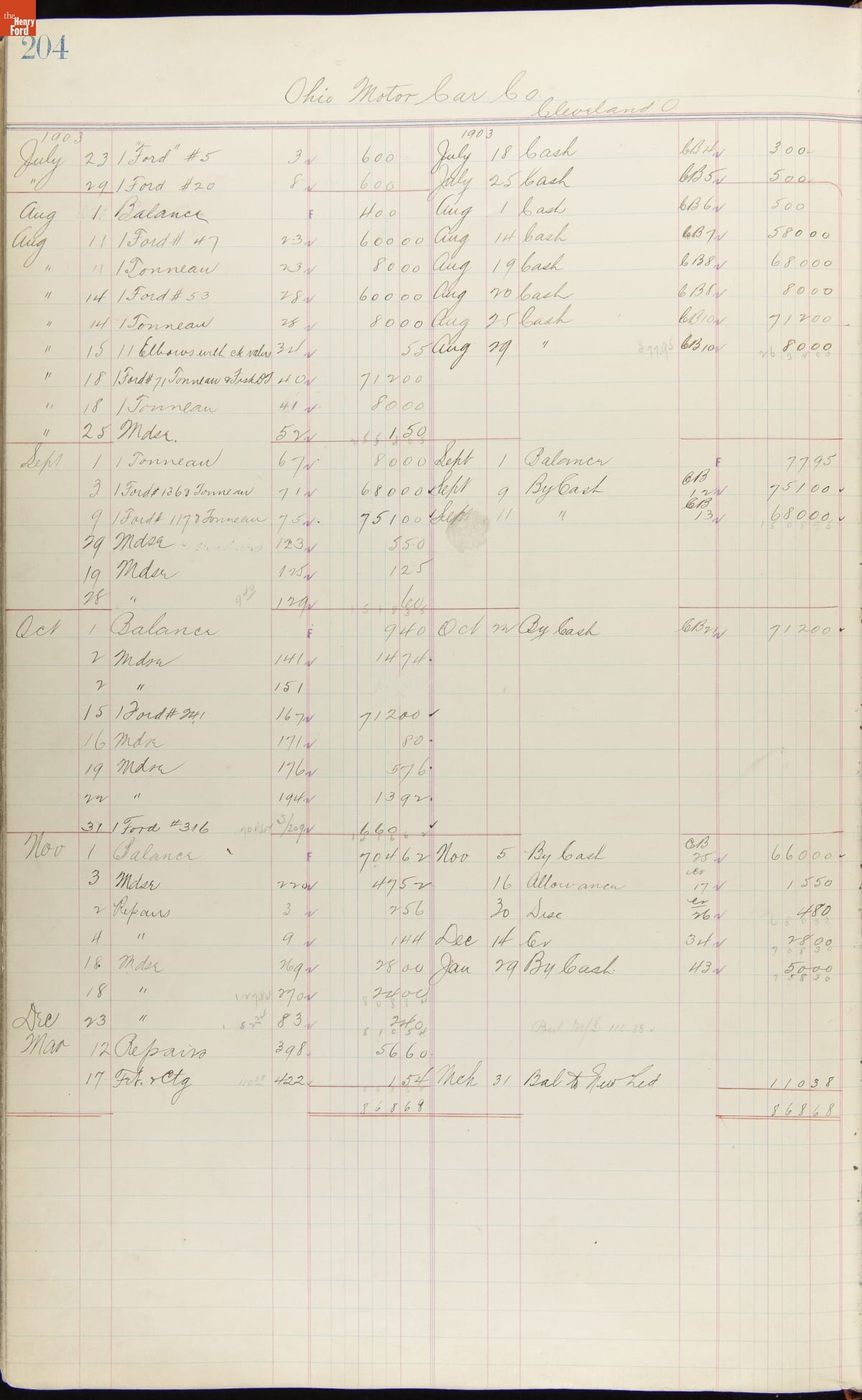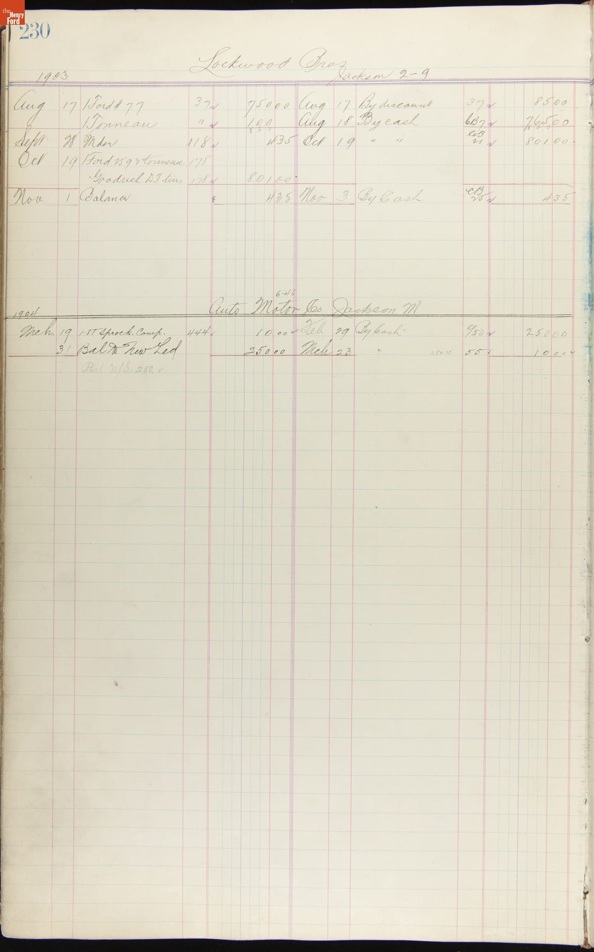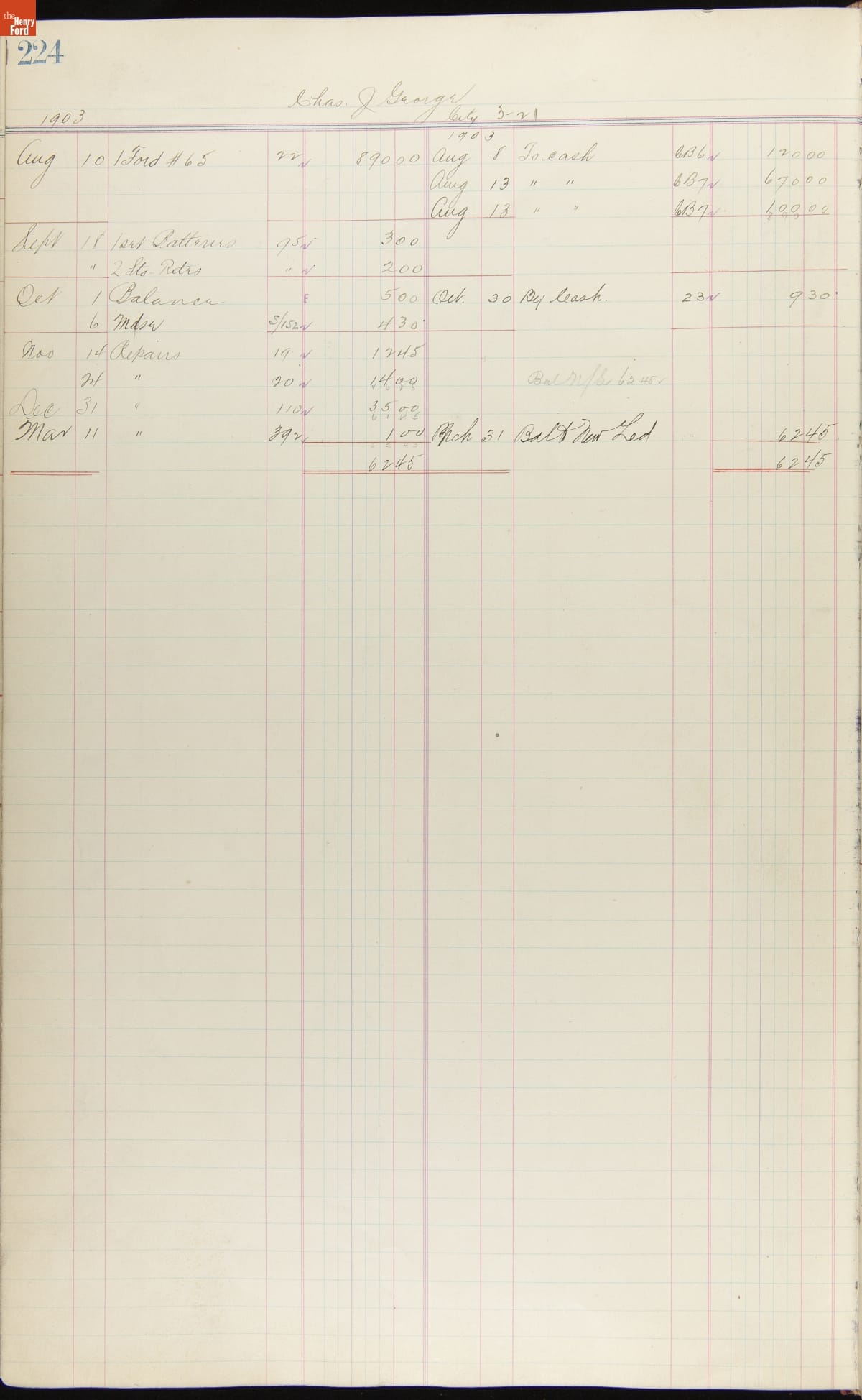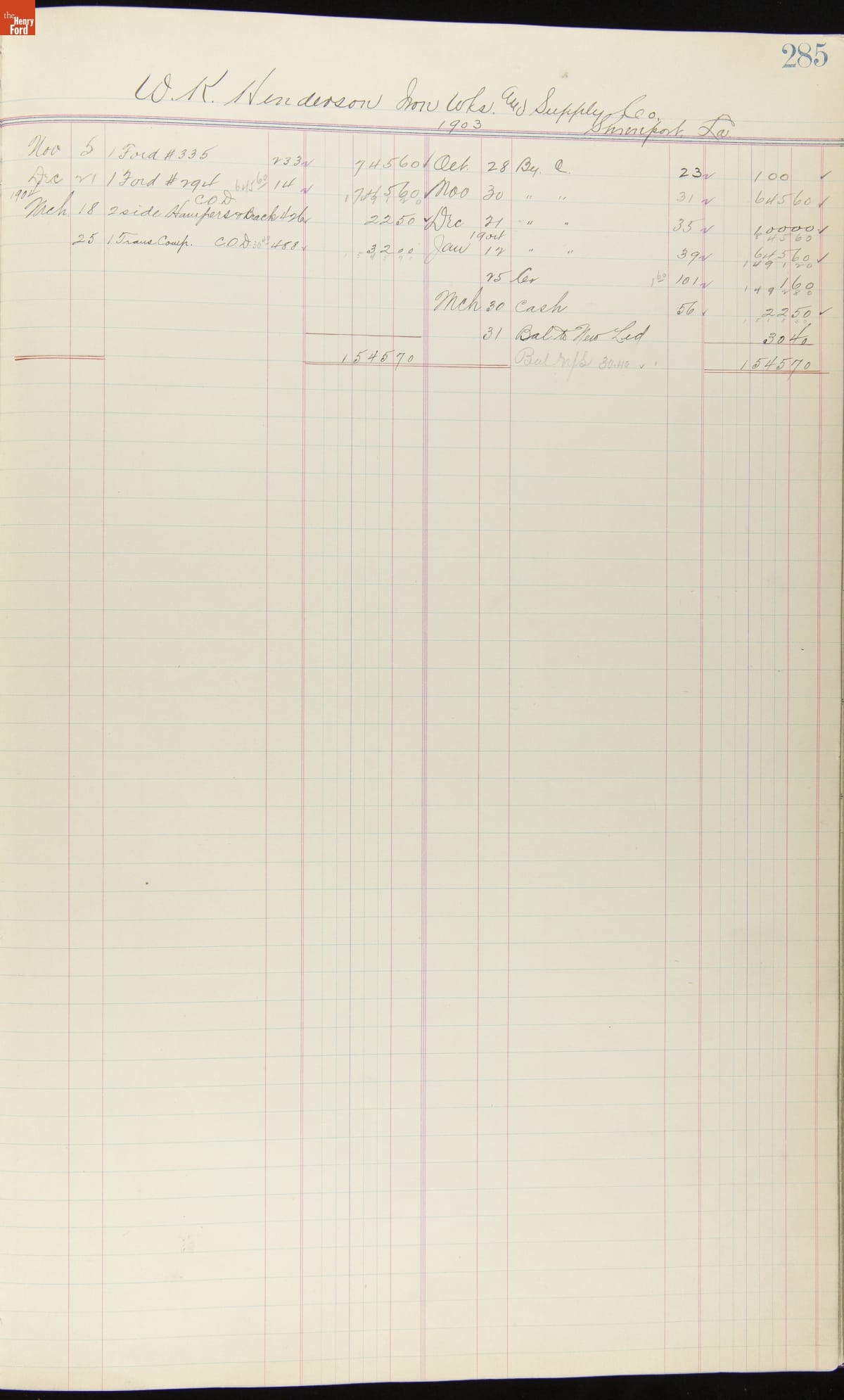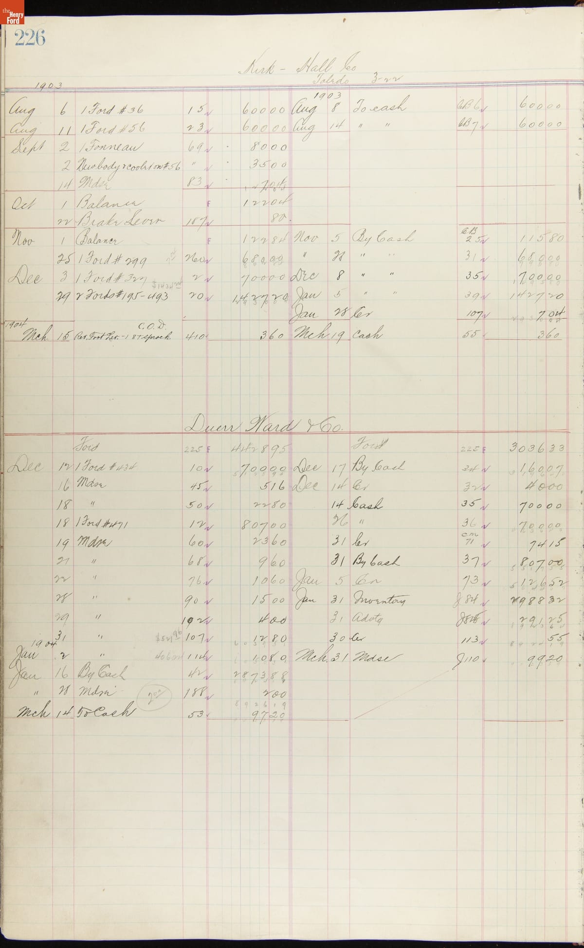 Ford Motor Company Ledger, 1903-1904