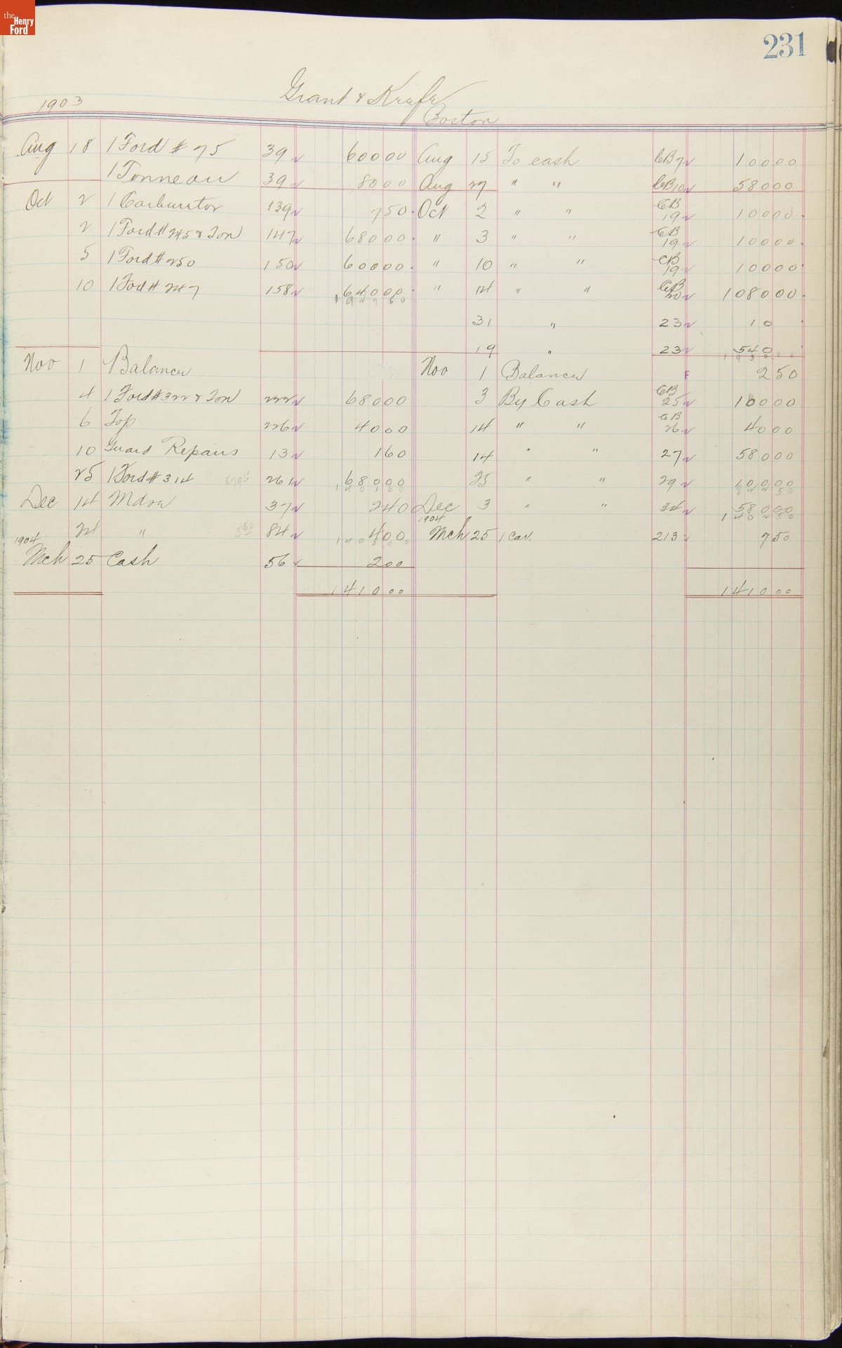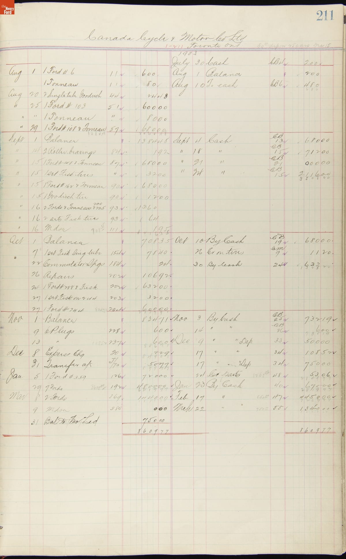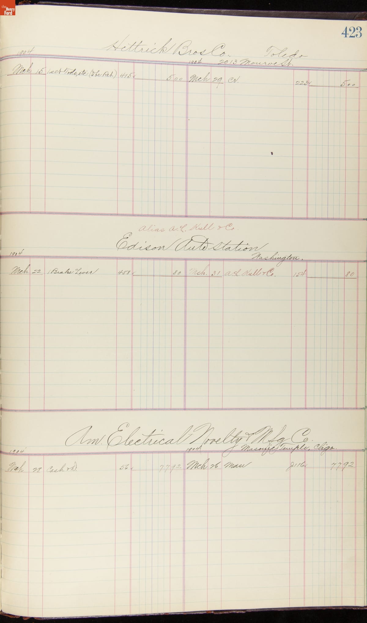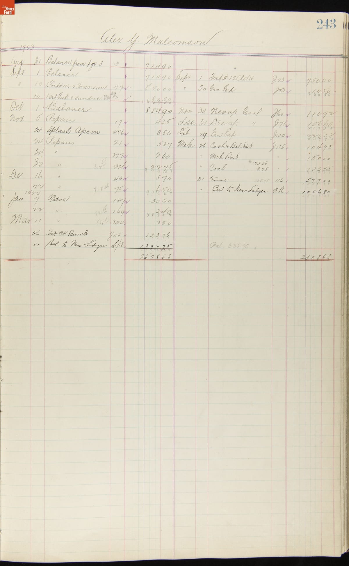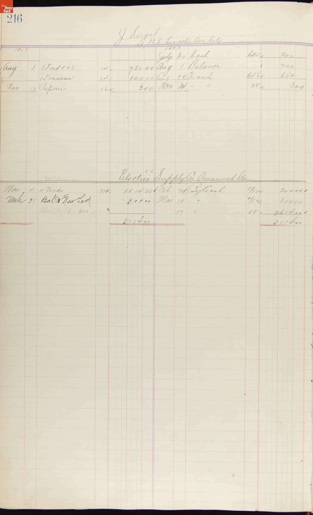 Ford Motor Company Ledger, 1903-1904