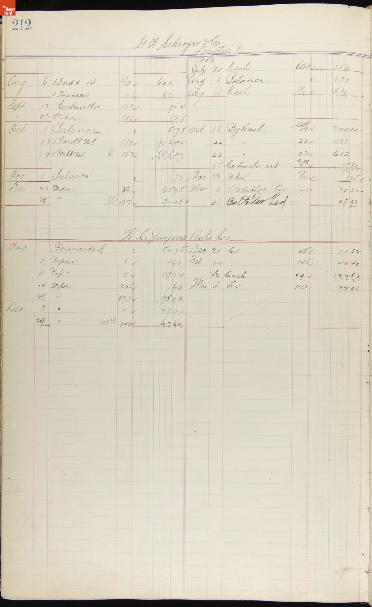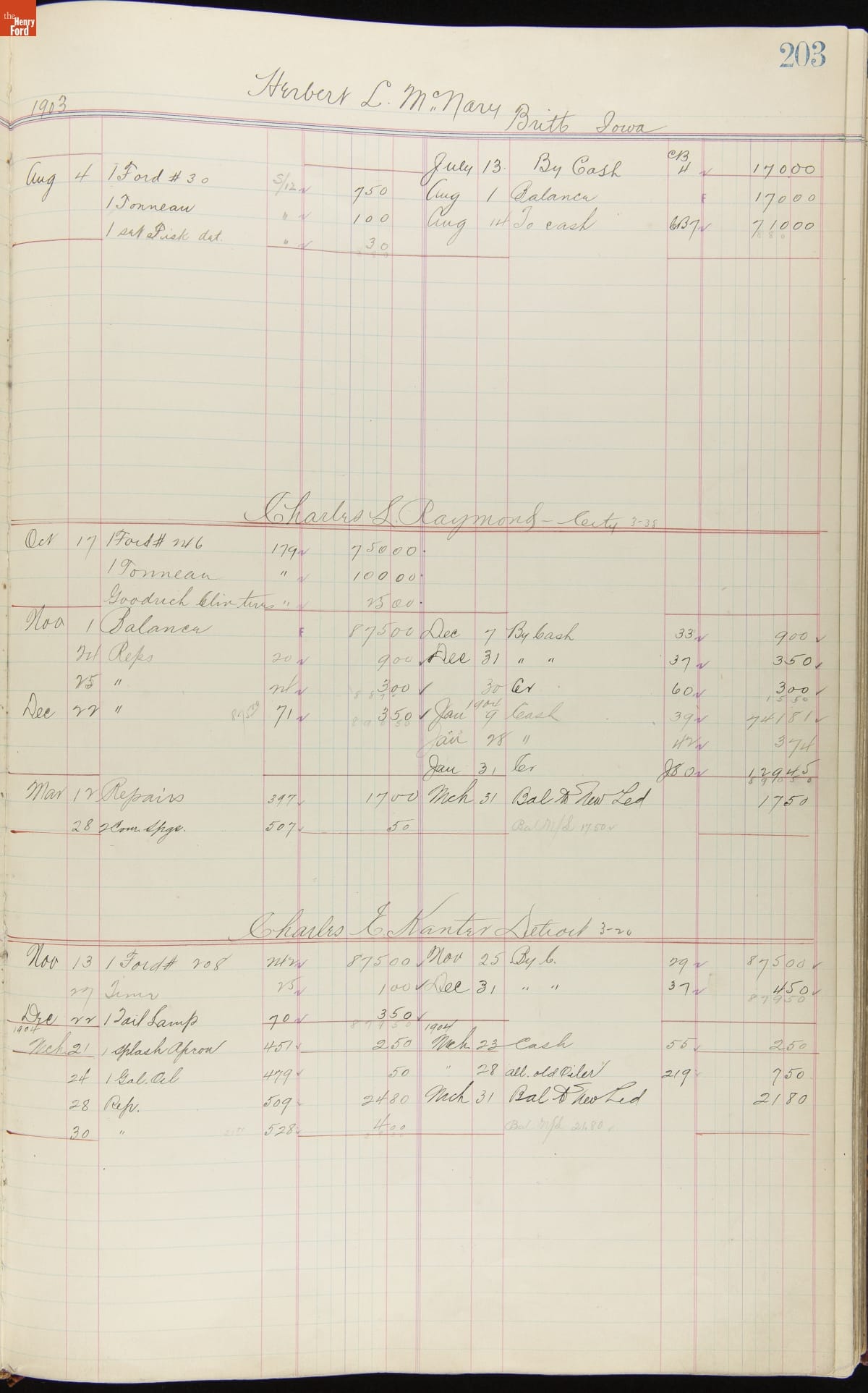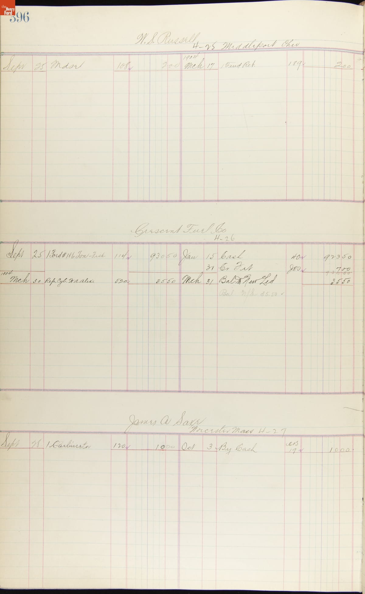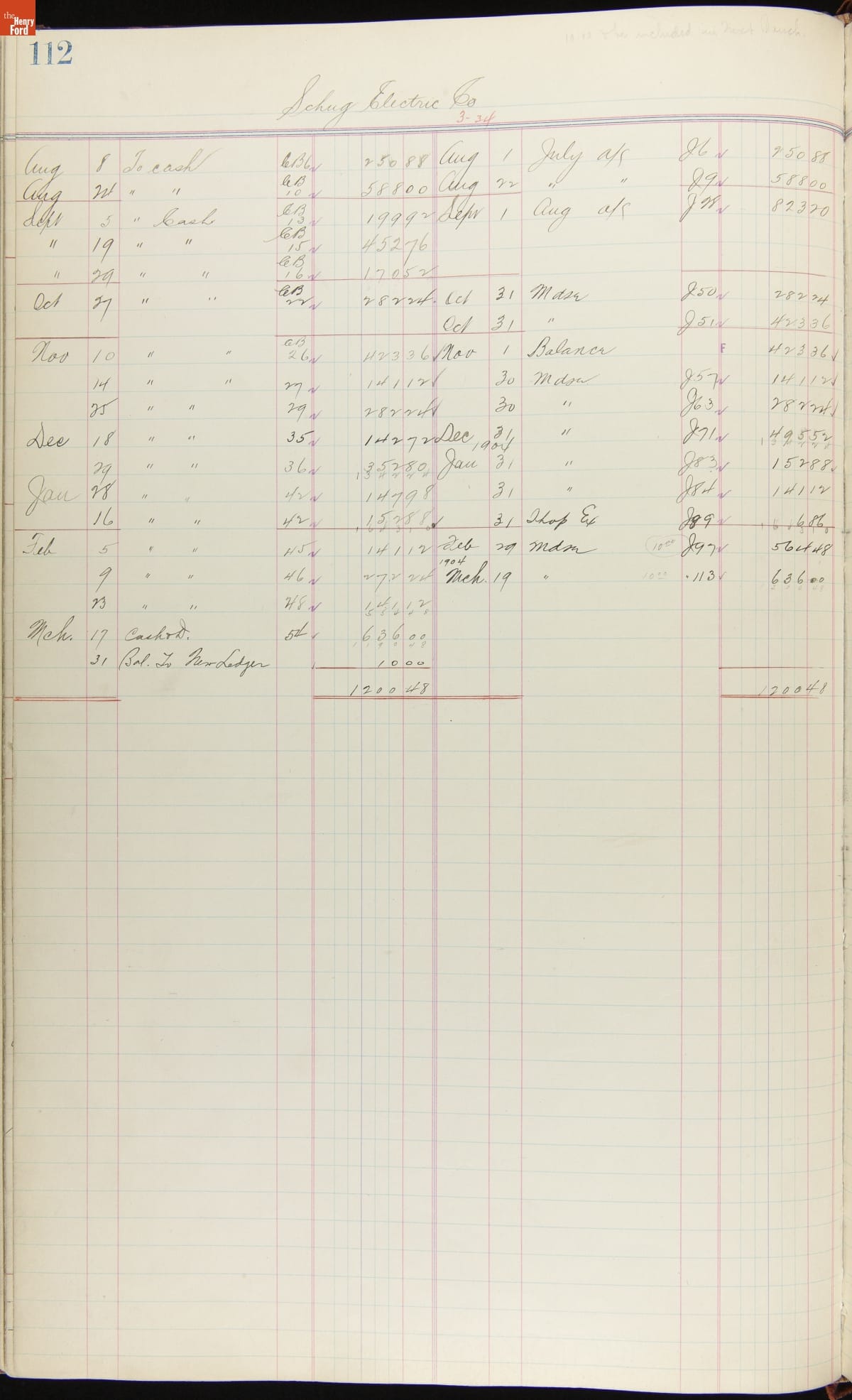 Ford Motor Company Ledger, 1903-1904