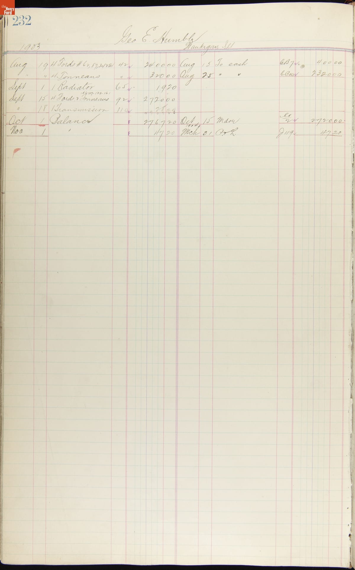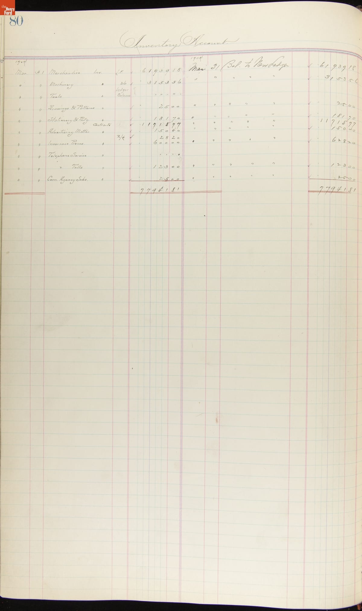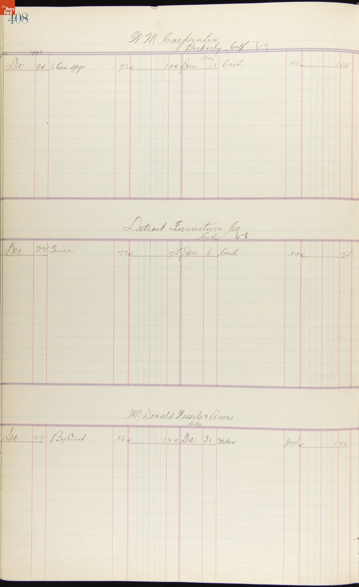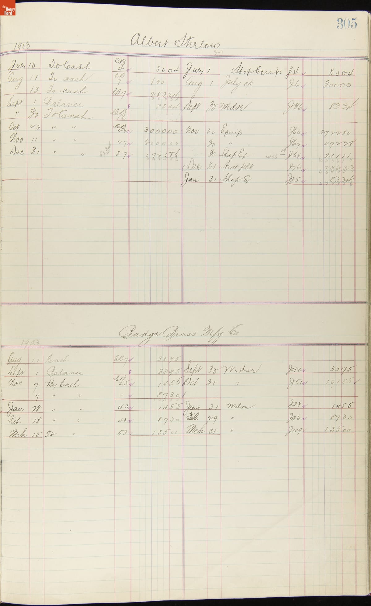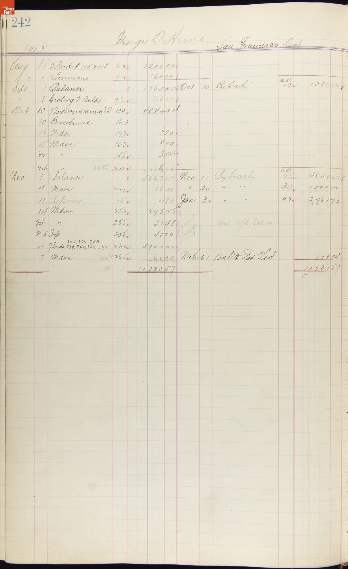 Ford Motor Company Ledger, 1903-1904
