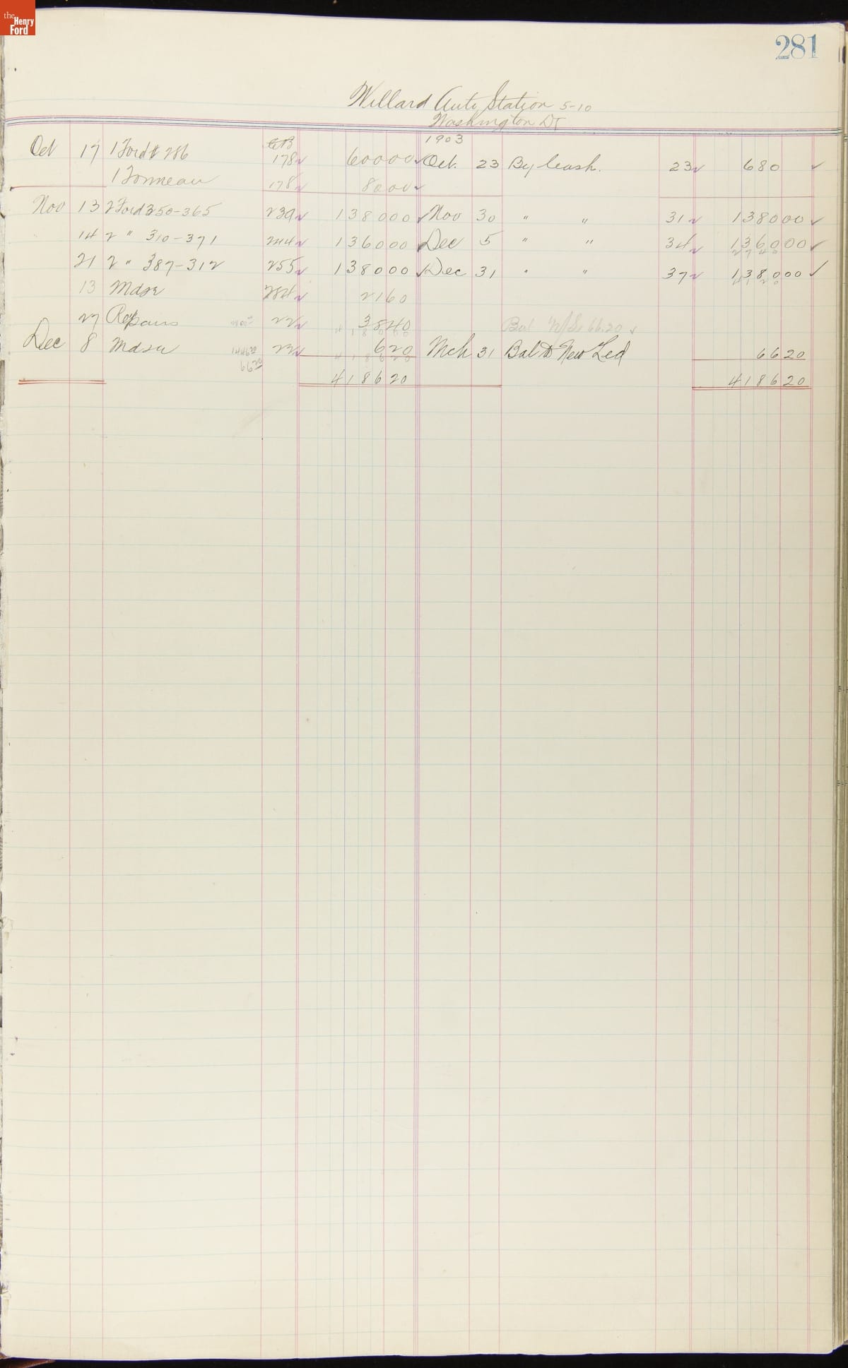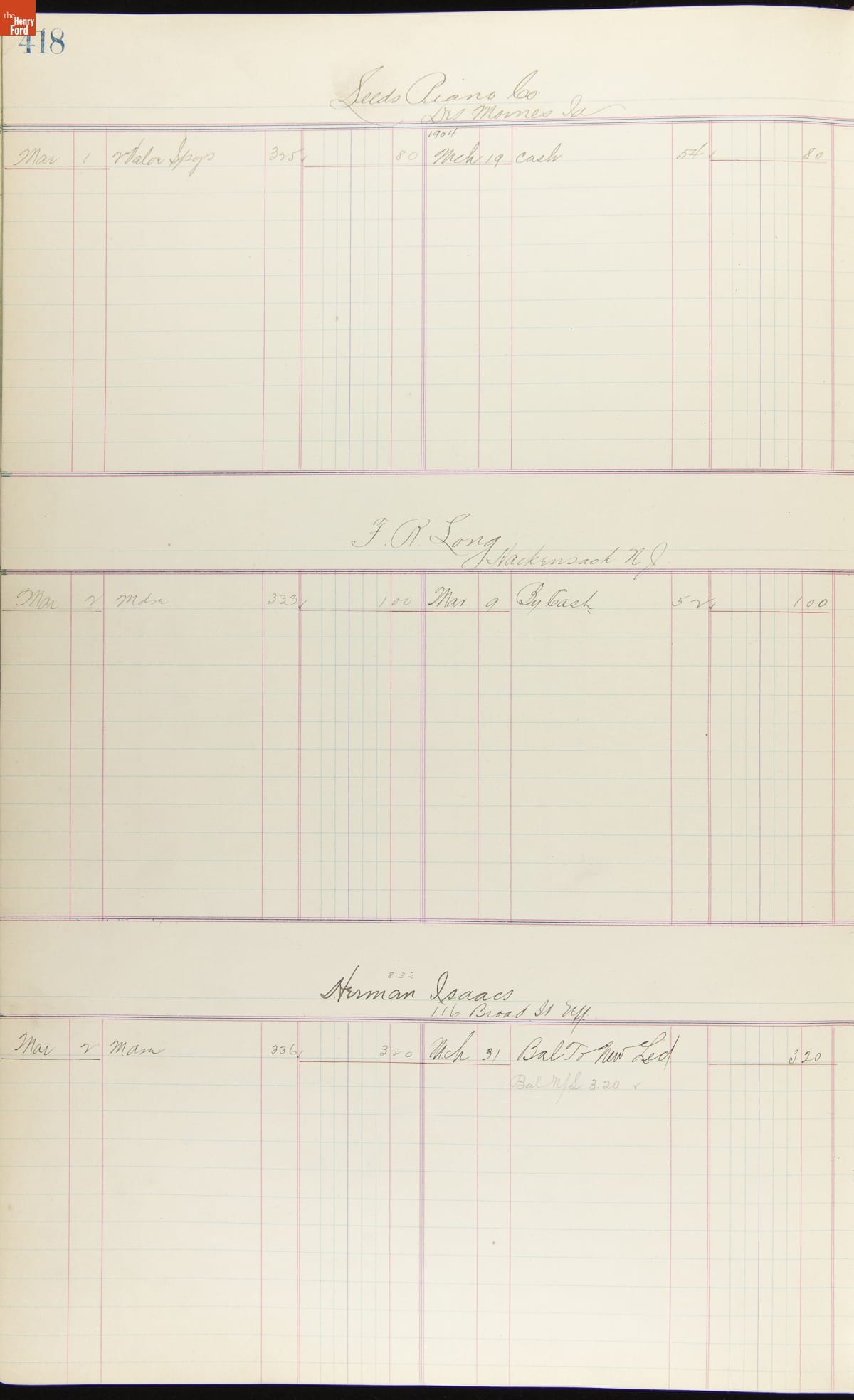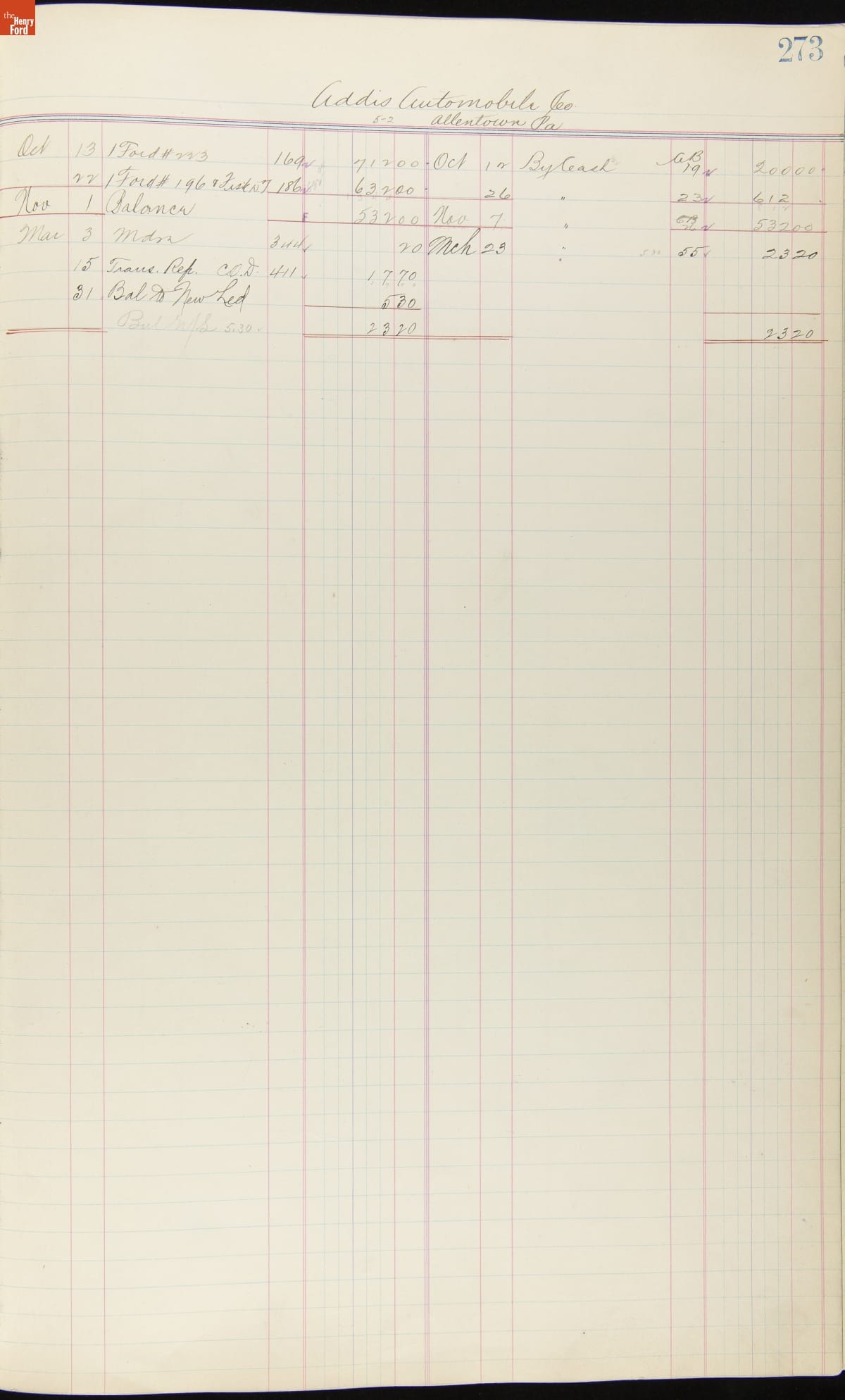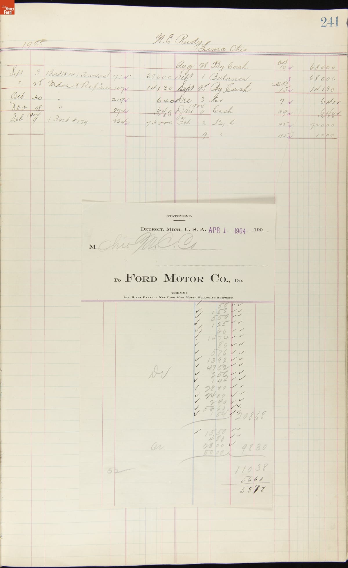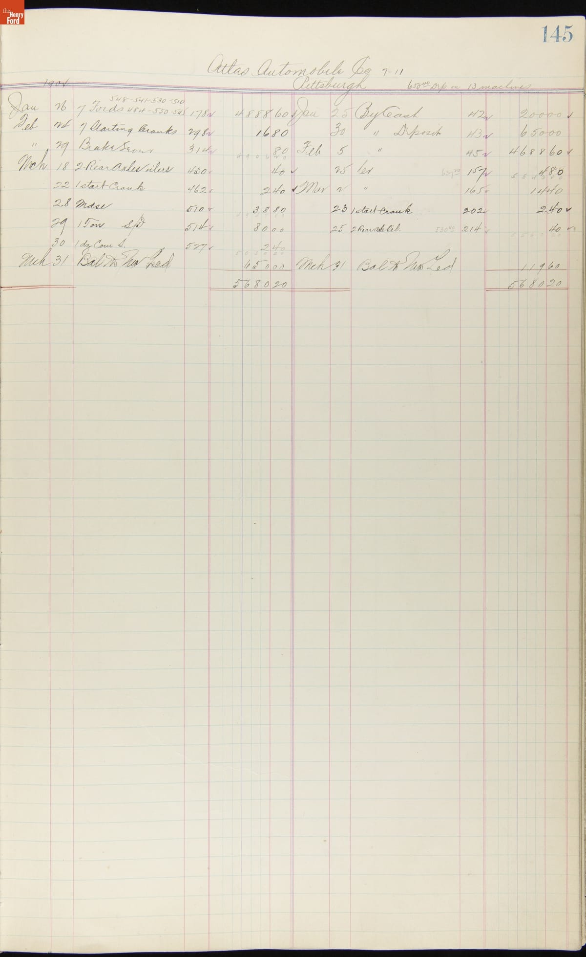 Ford Motor Company Ledger, 1903-1904