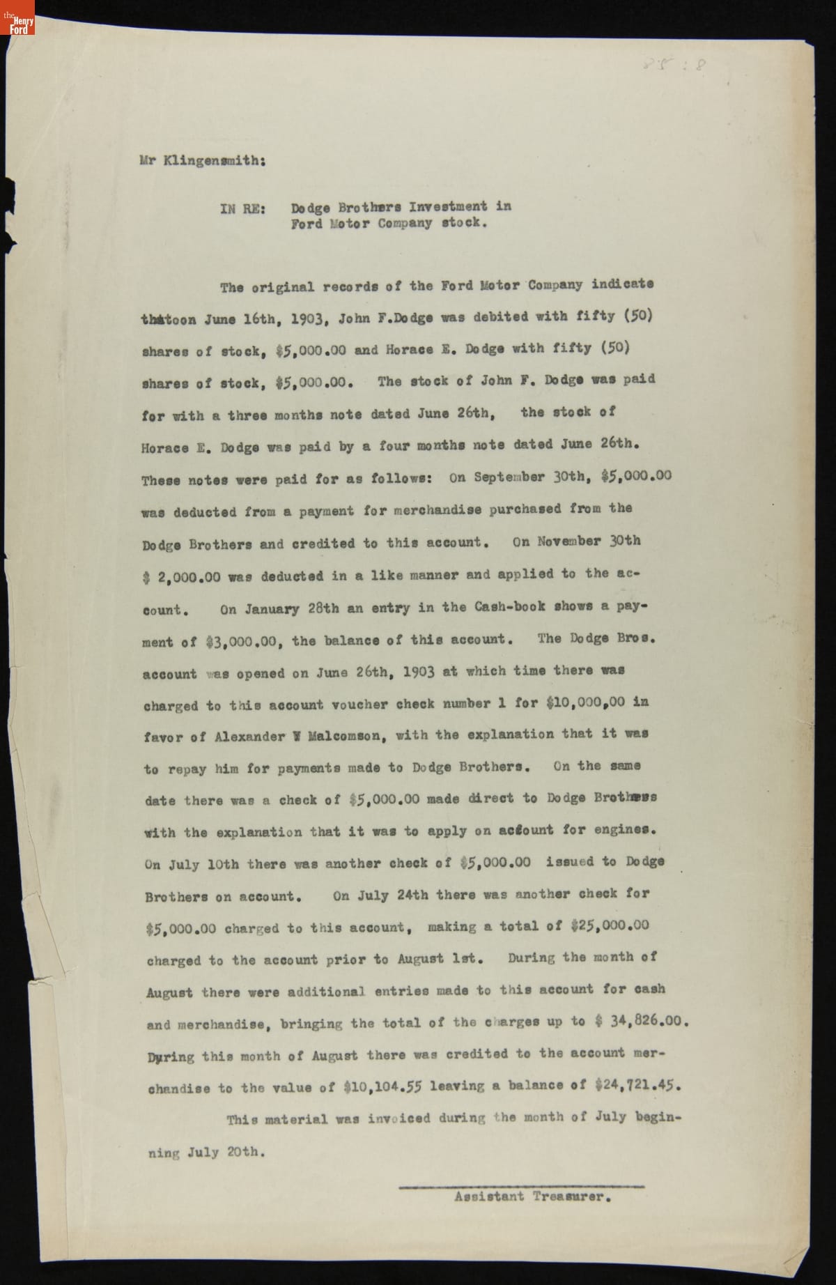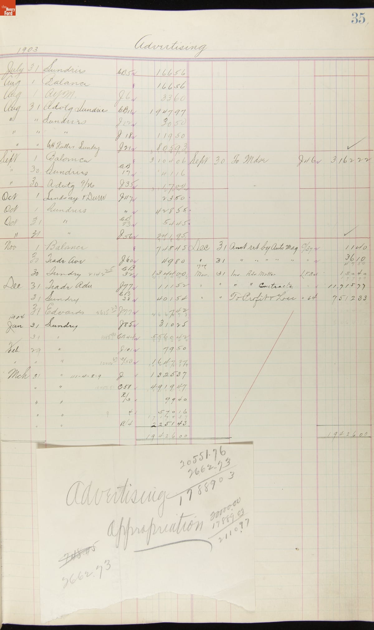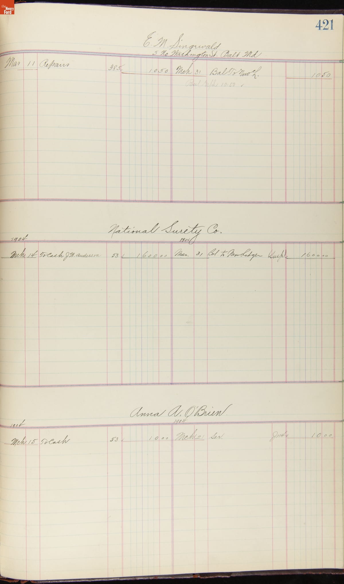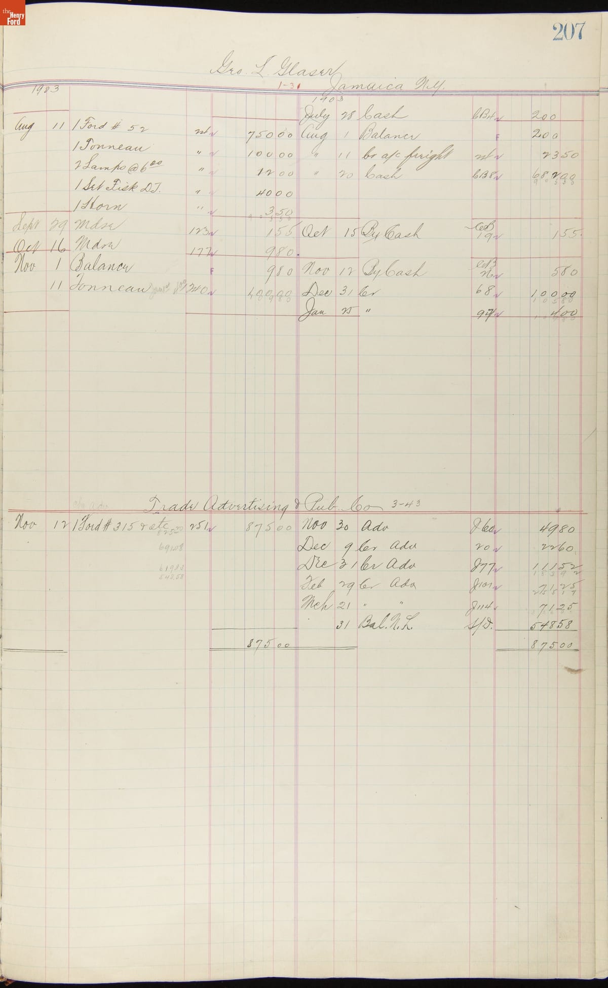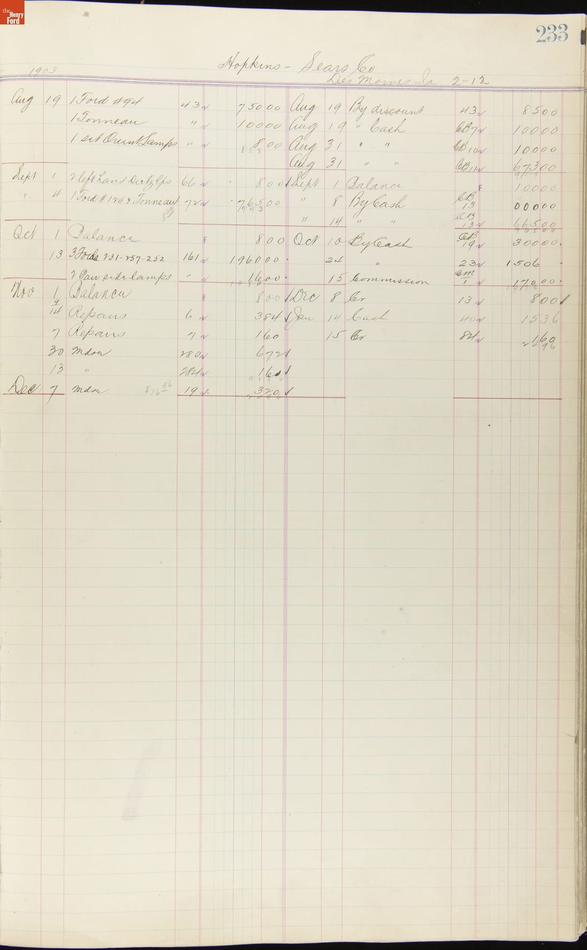 Ford Motor Company Ledger, 1903-1904