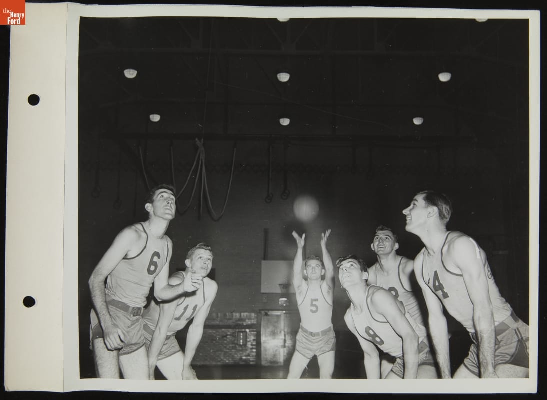 Ford Employment Shamrock Basketball Team Practicing in Fordson High School Gym, October 1943