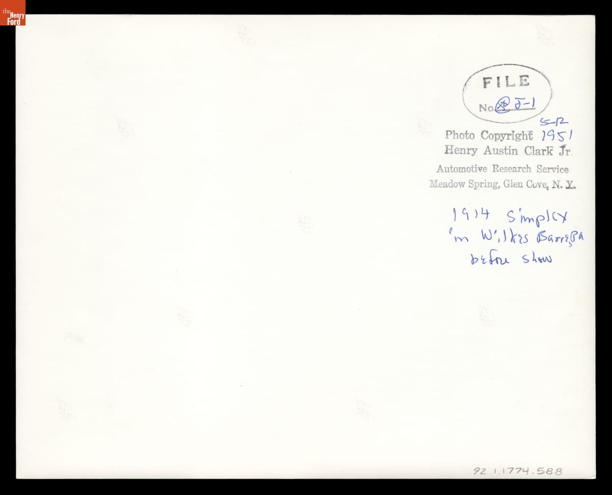 1914 Simplex Automobile in an Automobile Show in Wilkes Barre, Pennsylvania, May 12, 1951