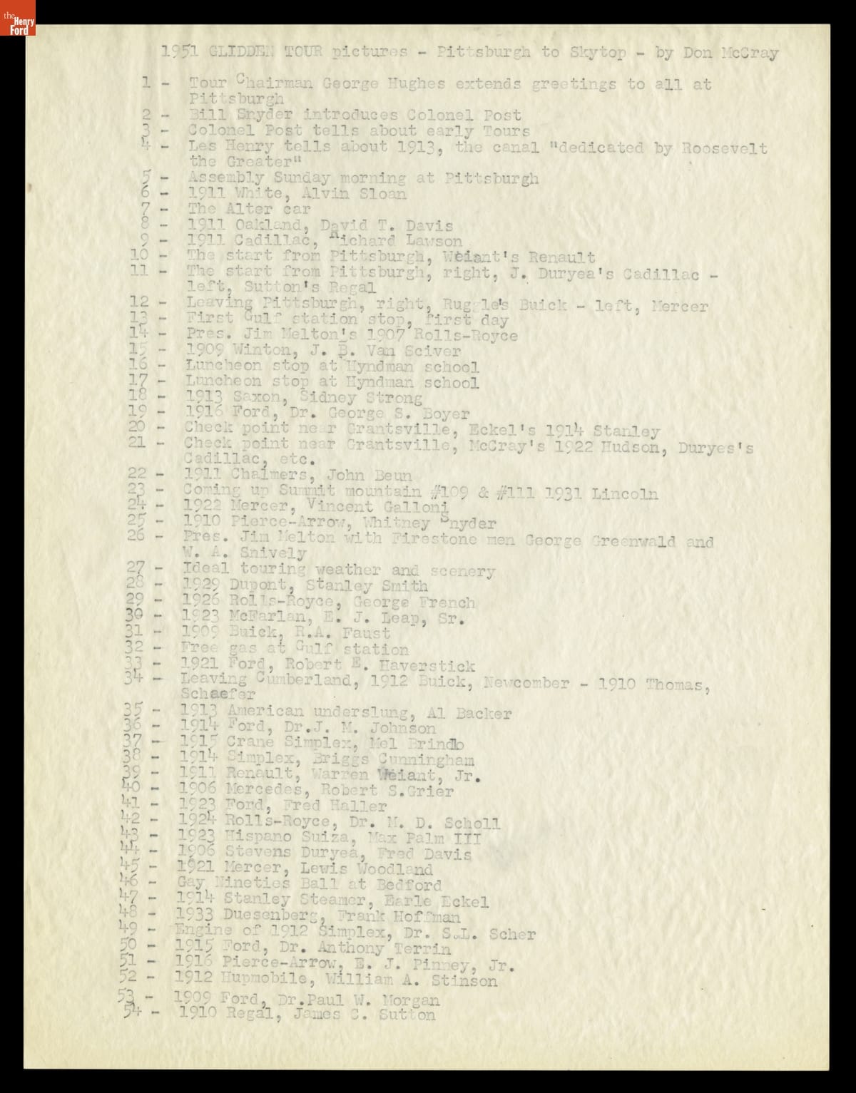 The original Glidden Tours, sponsored by AAA from 1904-1913, promoted both automobiles and road improvements. AAA and the Veteran Motor Car Club of America revived the annual tours in 1946 for owners of vintage automobiles. This time, the focus was more on pleasure than promotion. Participants often dressed in period costume, and they staged impromptu car shows along the way.