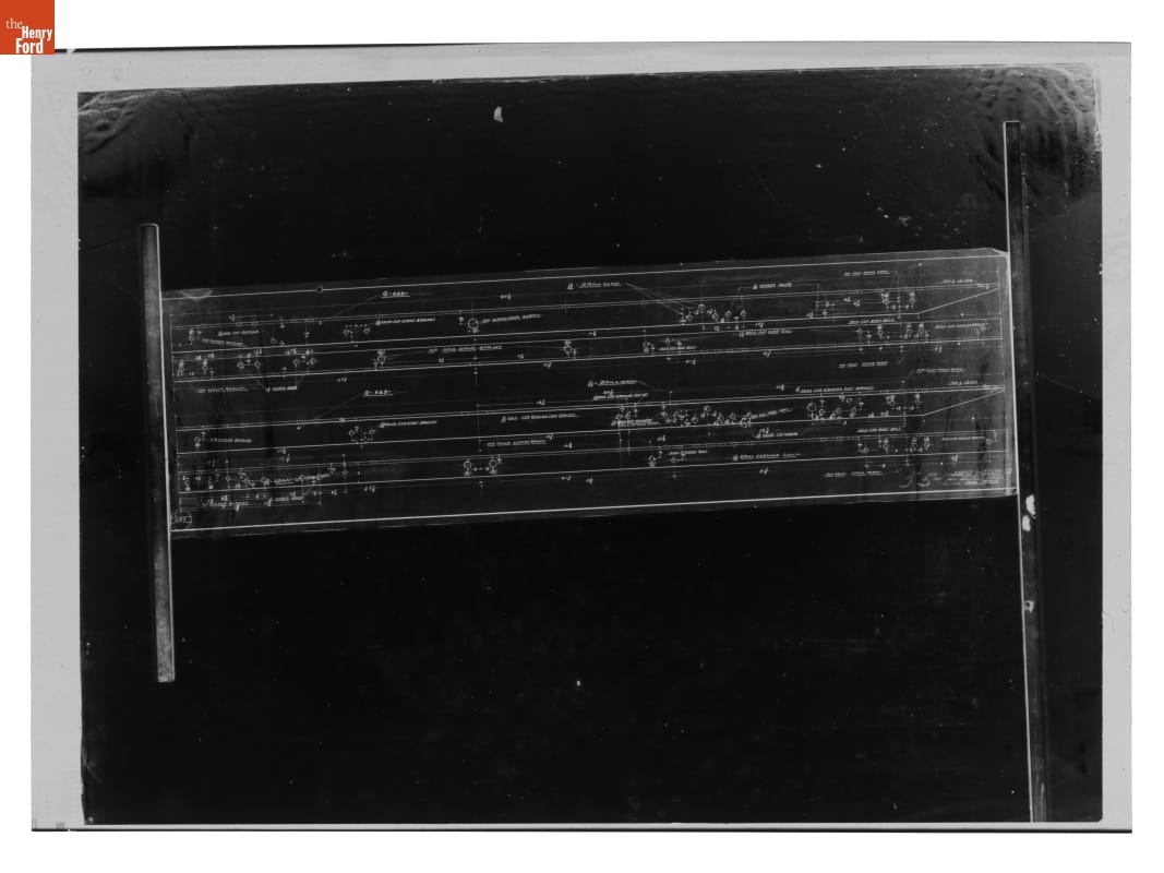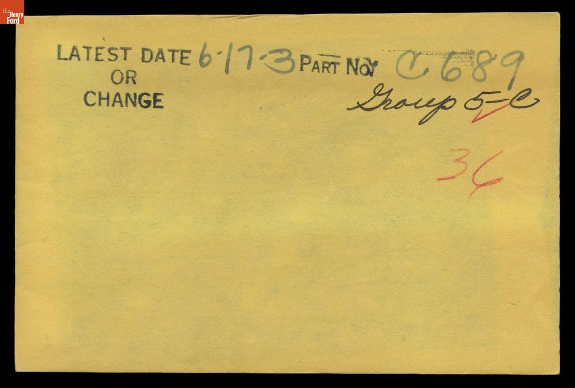 The Ford Motor Company created over a million parts drawings from 1903 to 1957. Many of these drawings specify engineering requirements for the components of Ford-made vehicles--including automobiles, trucks, tractors, military vehicles and Tri-motor airplanes. Others document assembly components, stages of casting and forging, or experimental designs. Beginning in the 1940s, Ford transferred the drawings to microfilm.