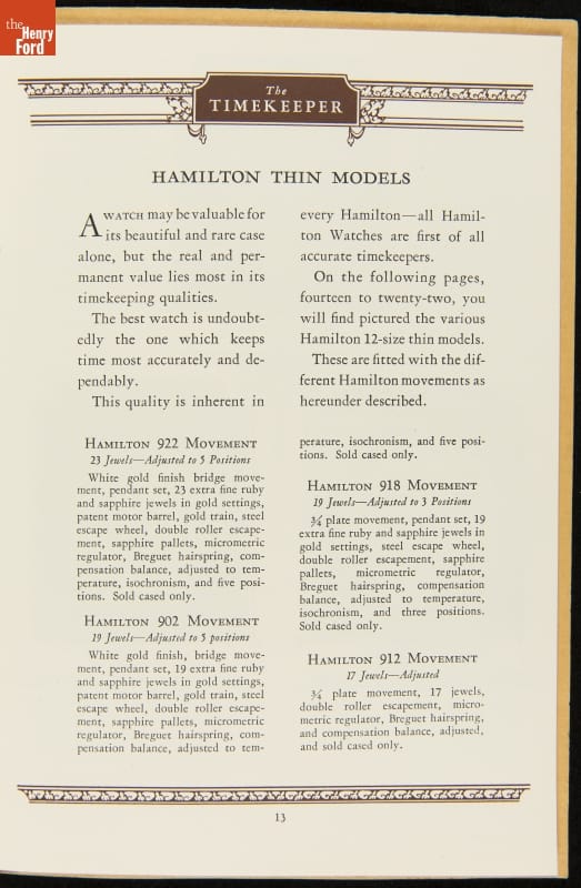 THF286700 / Catalog for Hamilton Watch Company, "Hamilton Watch The Watch of Railroad Accuracy," 1928 / page13