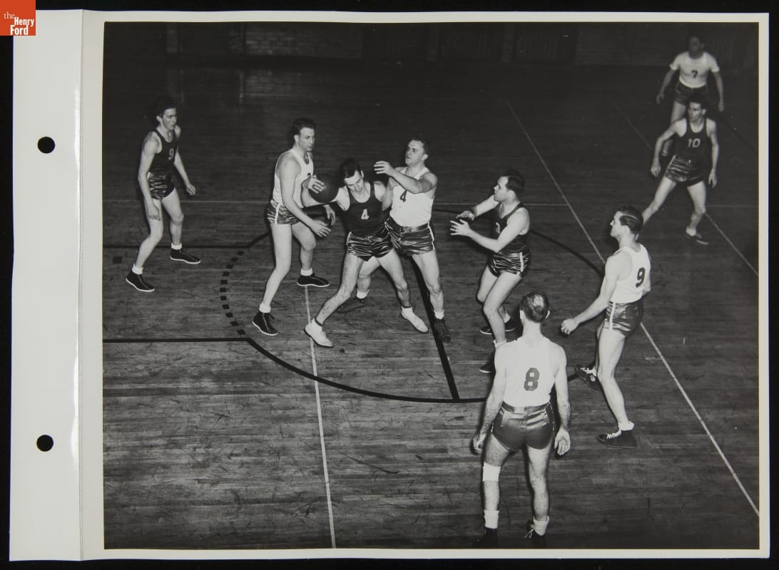 Ford Basketball Team Playing in Lowery School Gym, January 1944