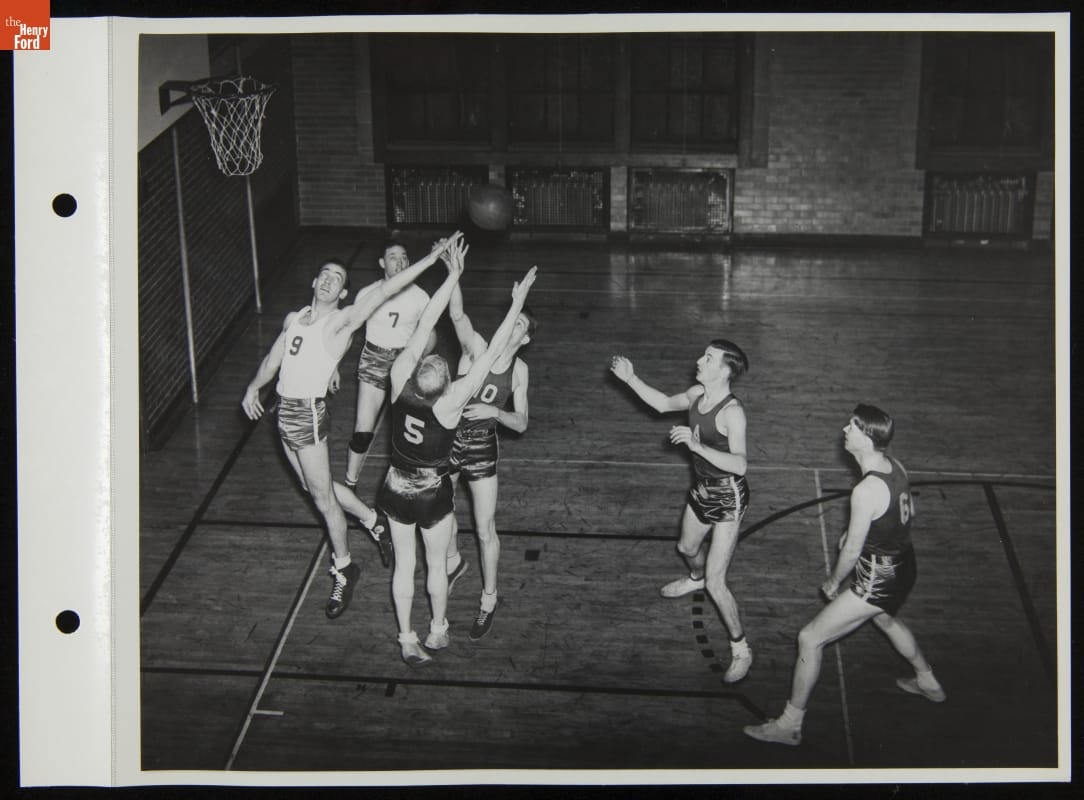Ford Basketball Team Playing in Lowery School Gym, January 1944