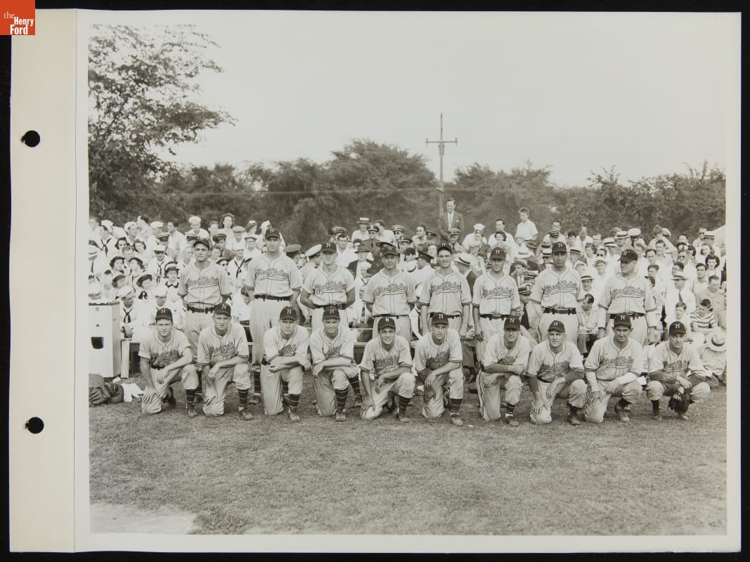 The Ford All-Stars defeated the visiting Great Lakes Naval Training Station Bluejackets 2-1 in a July 5, 1944, baseball match. Eight thousand fans came out to Ford's Rotunda Field to root on the hometown team. The All-Stars did not disappoint, winning on a ninth-inning home run and breaking the Bluejackets' 33-game winning streak.