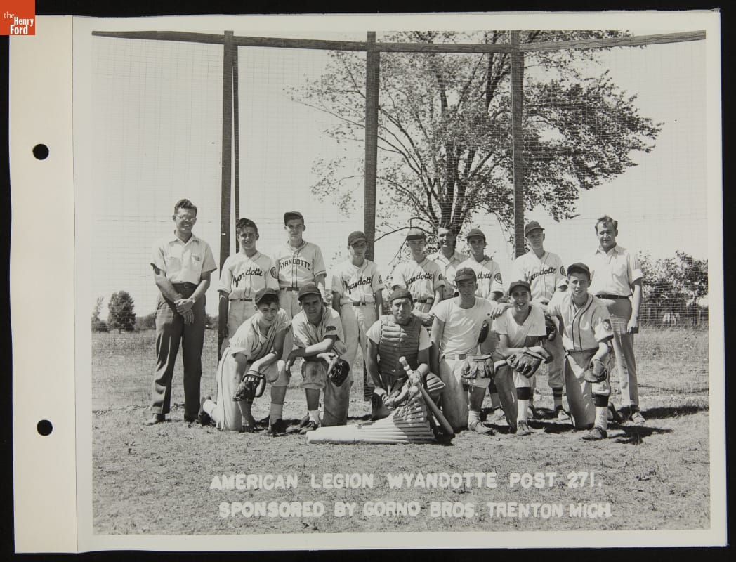 American Legion Wyandotte Post 271 Baseball Team Sponsored by Gorno Brothers, Trenton, Michigan, August 1944