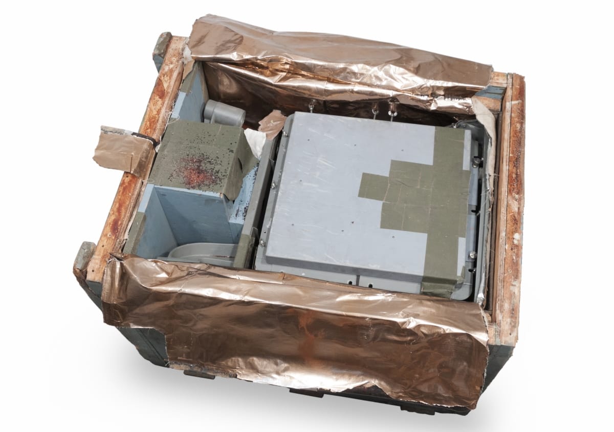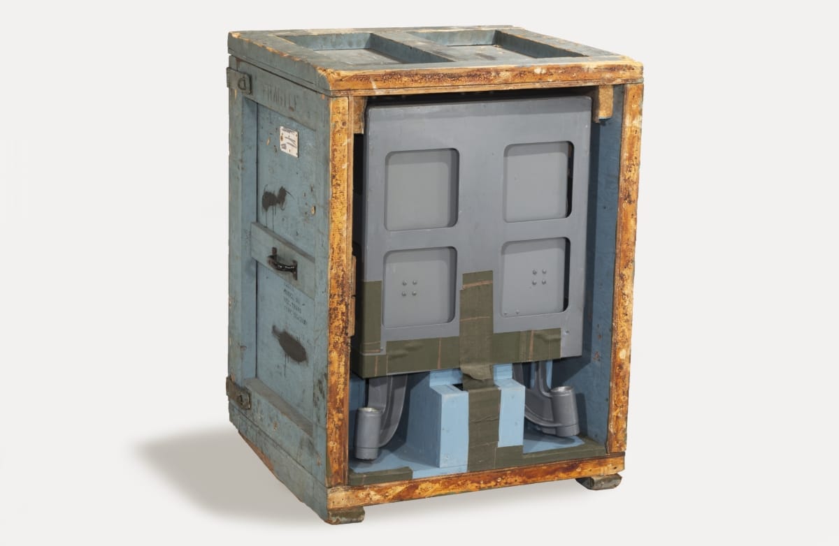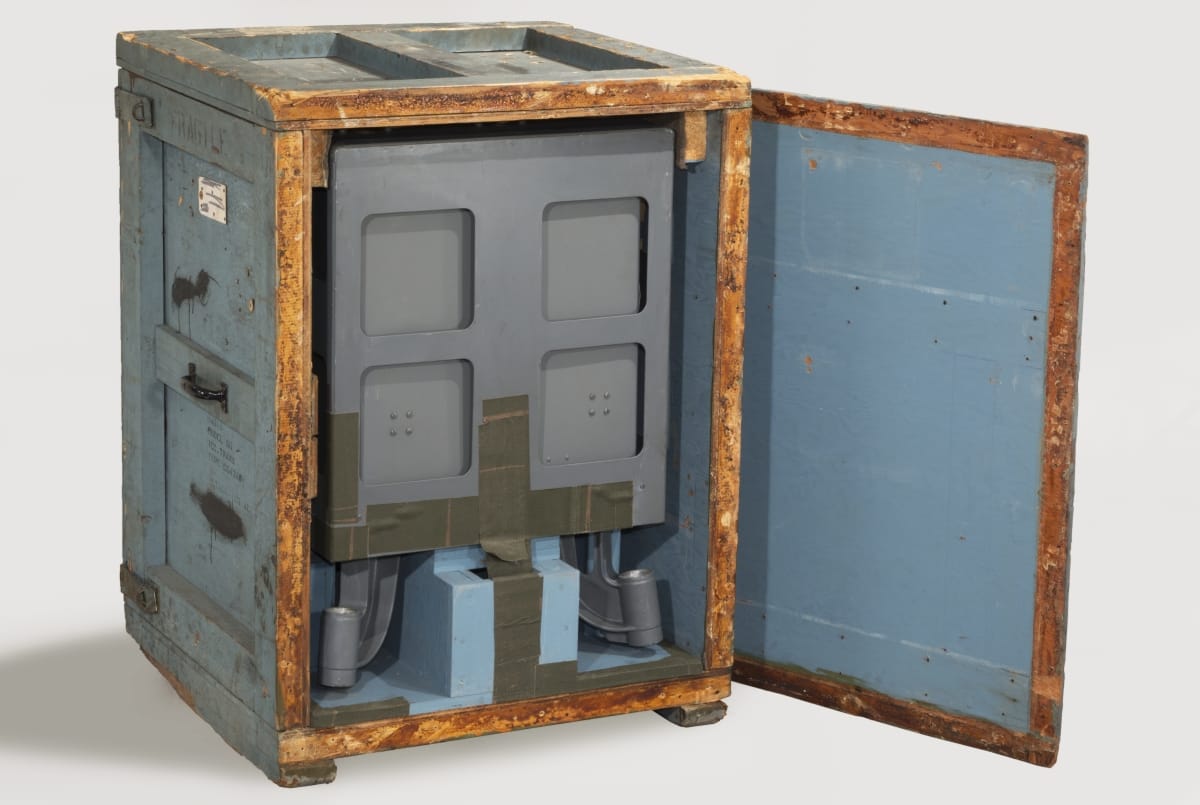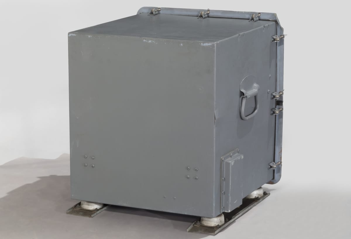 TYPE CG-43ABV / RADAR TRANSMITTER-RECEIVER / 220 POUNDS SERIAL 31 / A UNIT OF MODEL SQ RADAR EQUIPMENT / MANUFACTURED FOR / NAVY DEPARTMENT - BUREAU OF SHIPS / BY CONTRACTOR / GENERAL ELECTRIC / SCHENECTADY N Y / CONTRACT NXSS-14838