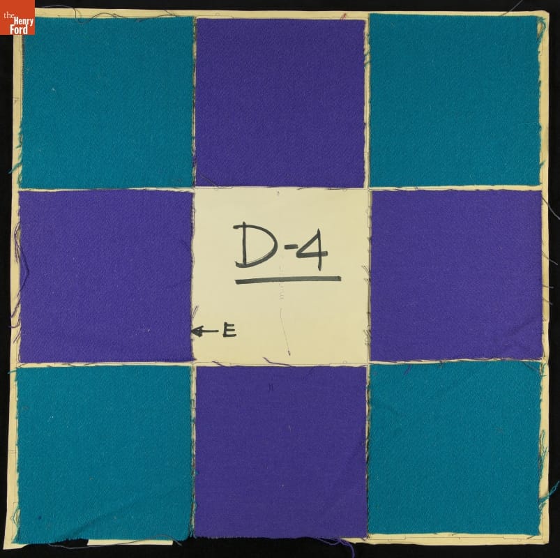 In 1961, Herman Miller opened the avant-garde "Textiles and Objects Shop" in New York City. Designer Alexander Girard conceived of the idea, designed the shop, and created many of the goods sold inside, including a colorful fabric-covered mirror. This design mock-up shows a possible geometric and color combination for the mirror.