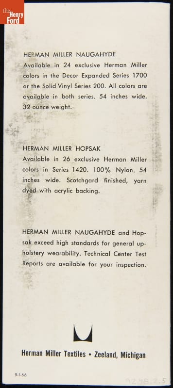 Naughahyde and Hopsak / Herman Miller Textiles, Zeeland, Michigan