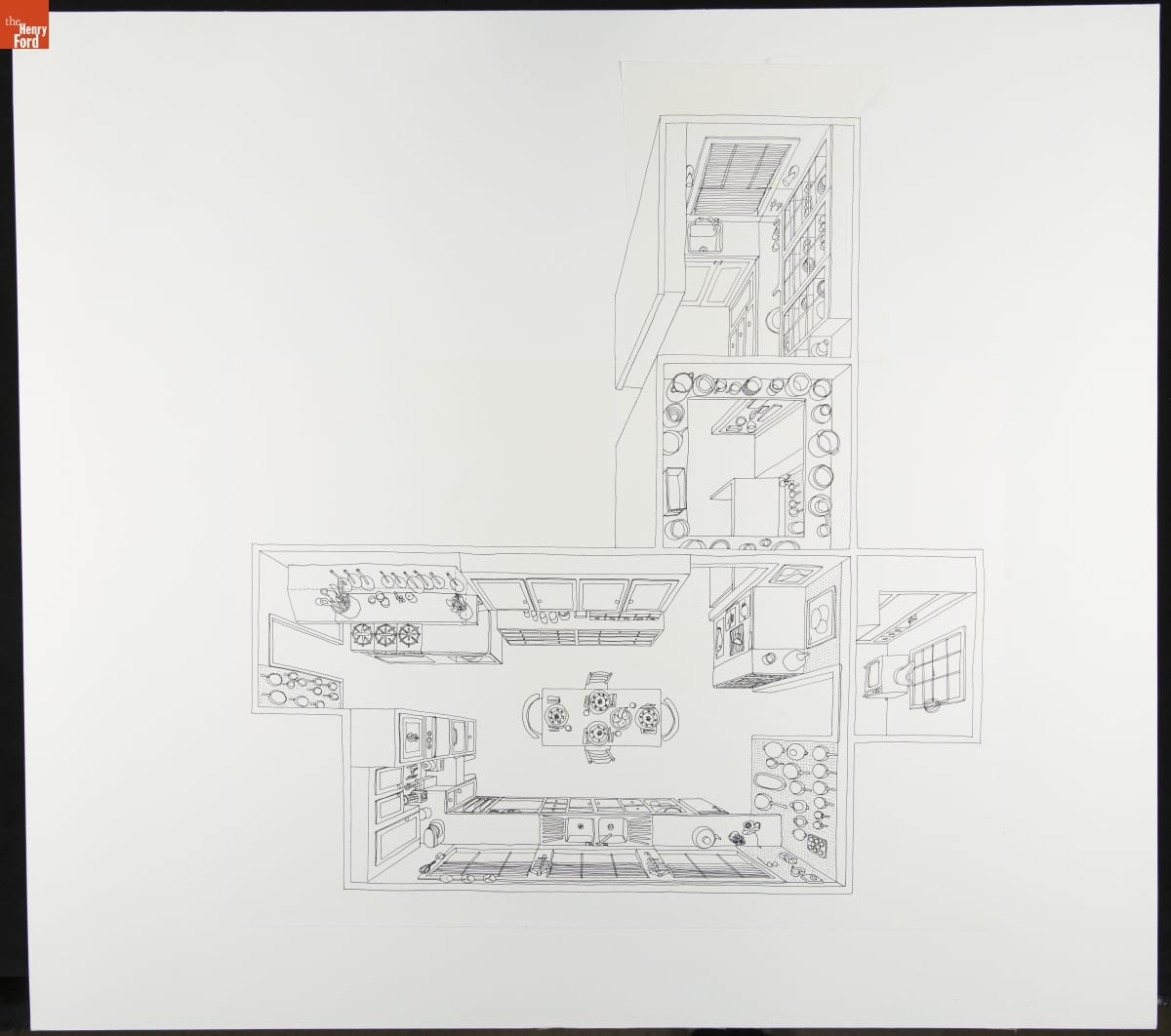 Overhead View of Julia Child's Kitchen, Pen Drawing by Jean Beirise, 1977