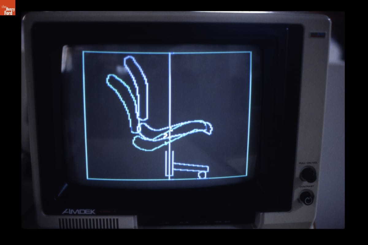 Monitor Showing Computer Simulation of an Office Chair, 1984