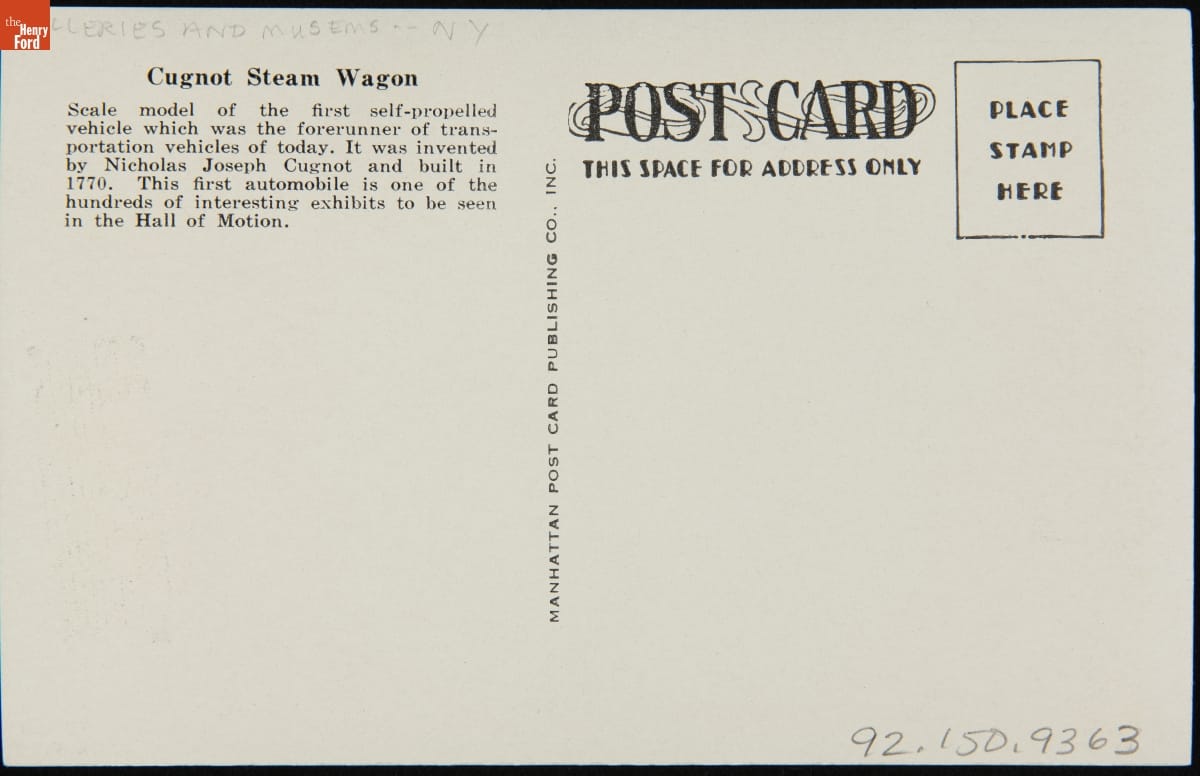 Cugnot Steam Wagon, Built 1770, on Exhibit at the New York Museum of Science and Industry
