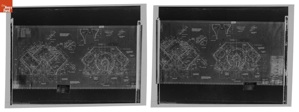 THF406468 / Drawing, "Block - Cylinder, Sheet #6," Ford Flathead V-8 Engine, April 10, 1953 / inverted, exposure corrected