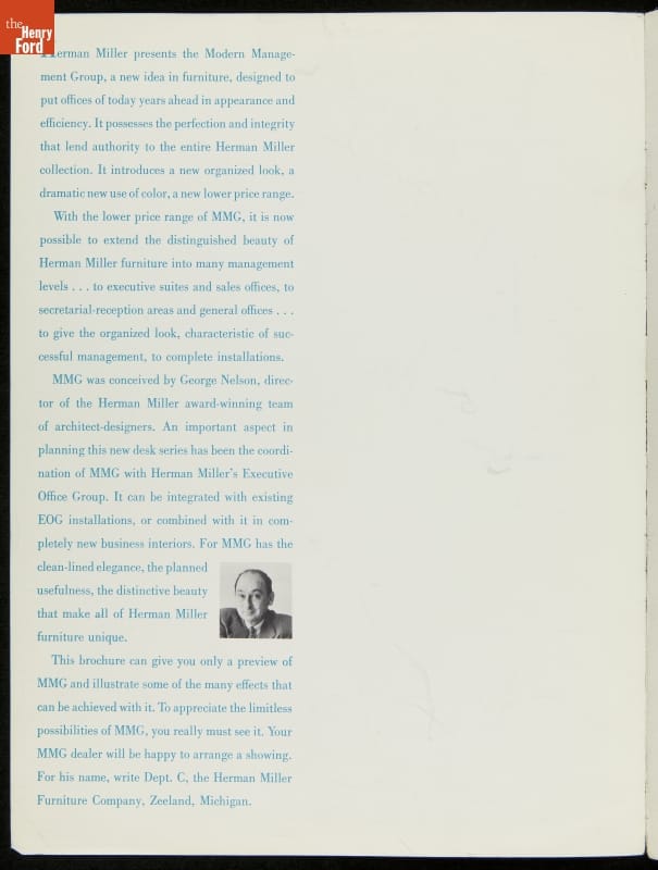 Catalog for Herman Miller Furniture, "The Herman Miller Look Now in MMG," 1957