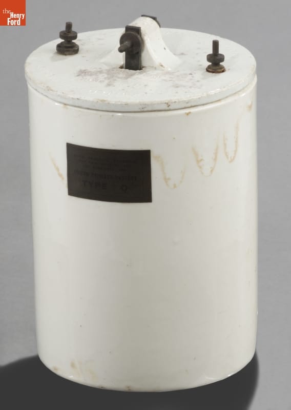 A chemical reaction hidden within this battery's white porcelain jar creates electricity. Thomas Edison developed this battery from an earlier design by Felix Lalande and Georges Chaperon. Batteries like this powered fans, phonographs, telephones, and a variety of other devices for years in places where the electric grid did not reach, or electric generators were impractical.